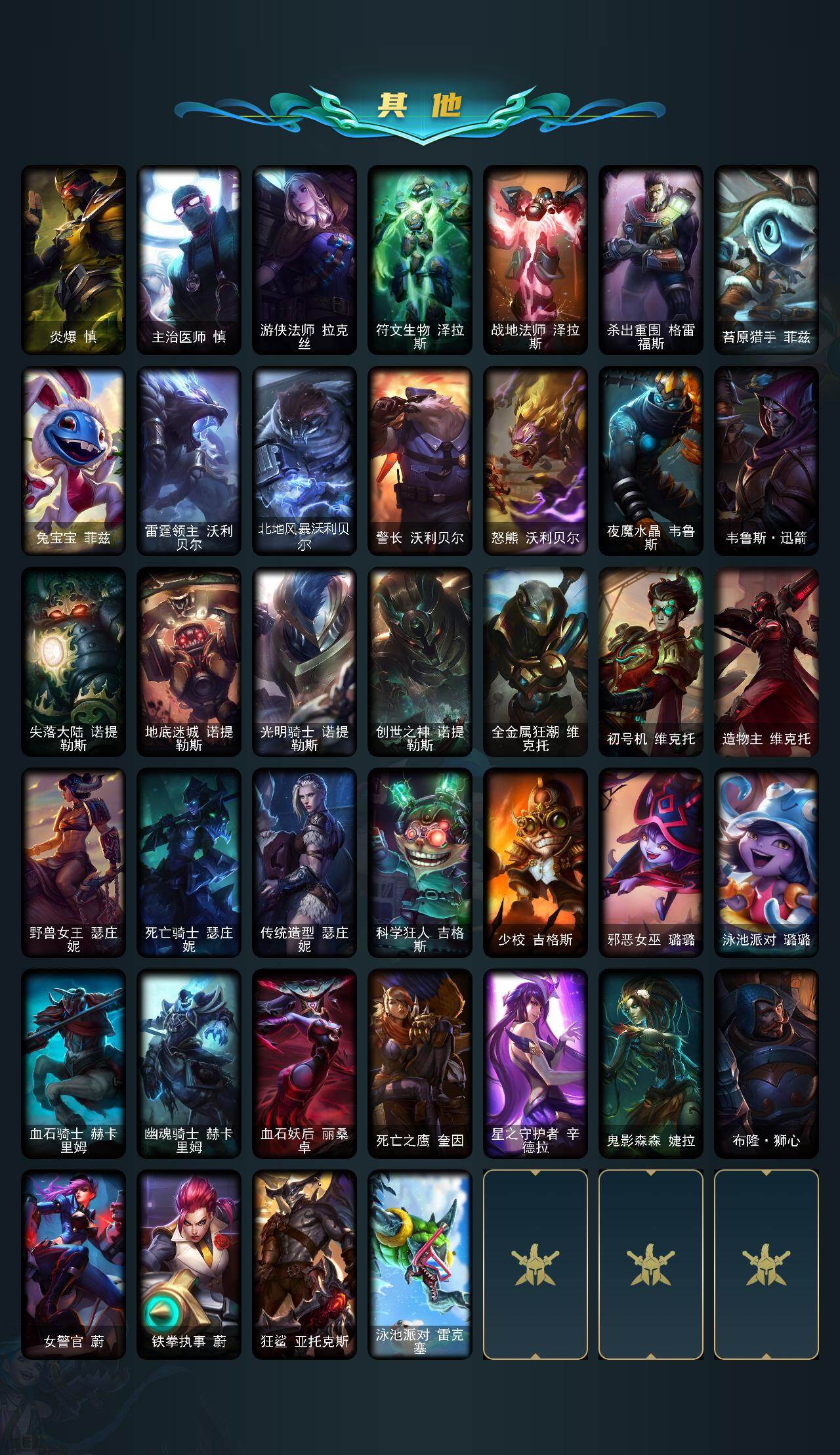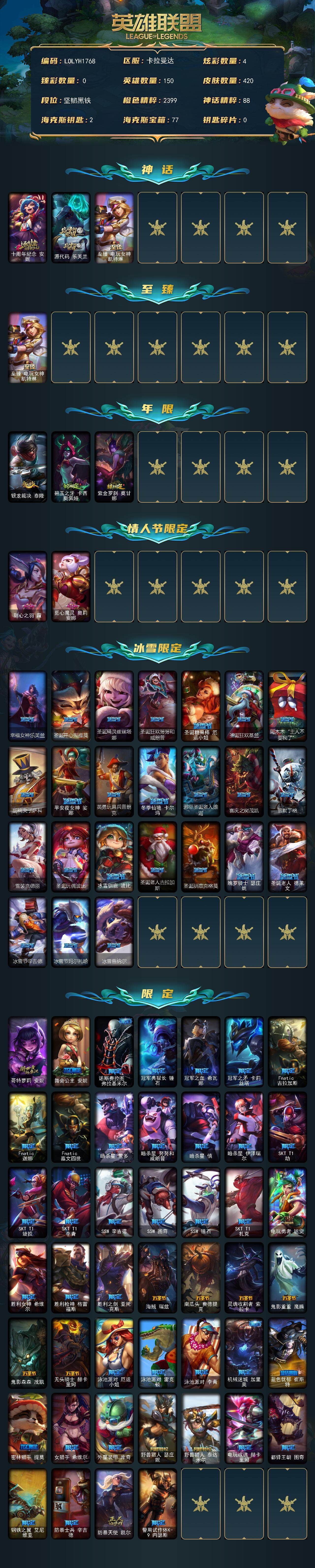 未定级段位-150英雄-420皮肤-4炫彩-0终极-3神话-75限定-26传说-104史诗