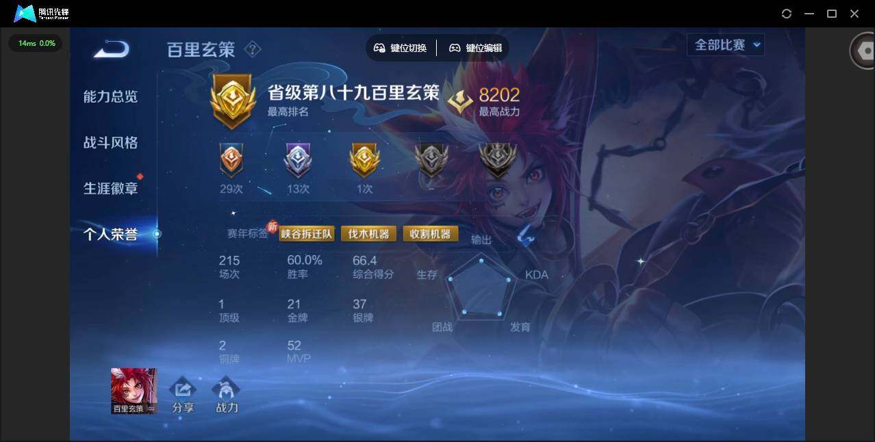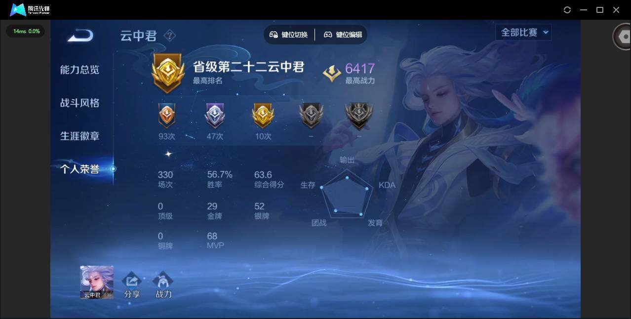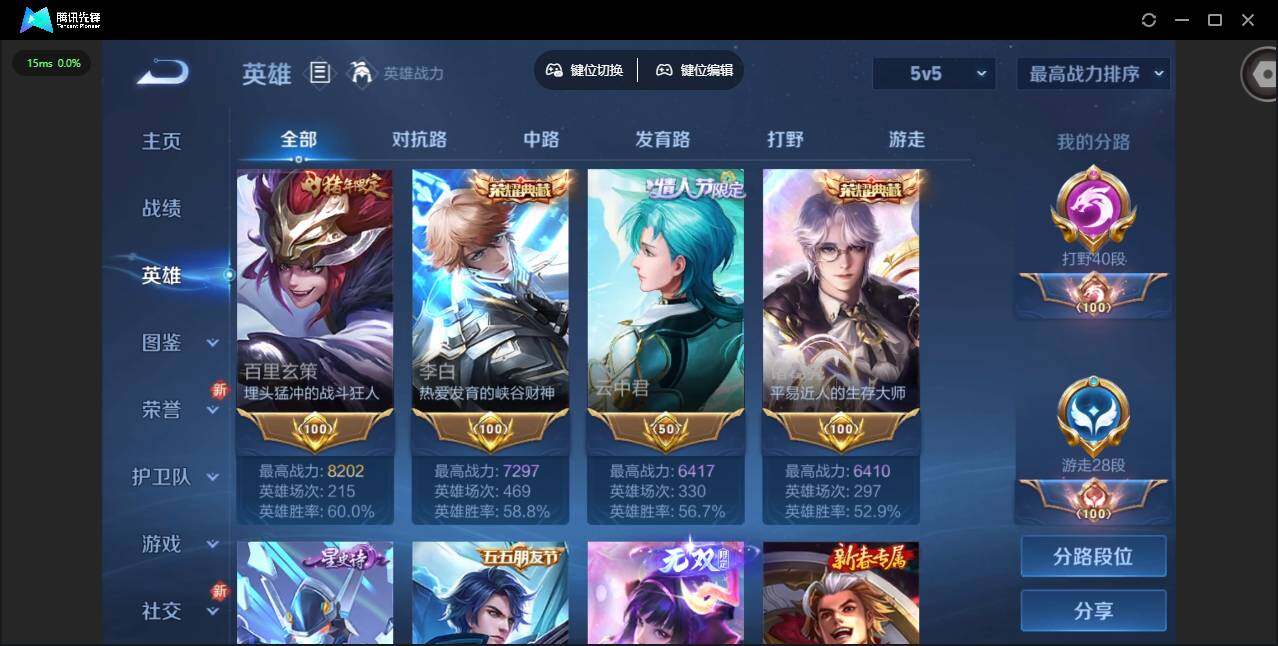 【金标百里玄策 金标李白 金标云中君 金标诸葛亮 金标吕布 金标铠】实名: 可修改 贵族等级: V10 英雄数: 127 皮肤数: 385 荣耀水晶: 武则天,大秦宣太后,鸣剑·曳影,星域神启,拾光映像 无双皮: 真我赫兹(瑶),雪境奇遇-甄姬 星传说: 幻海之心,未来机甲,幽冥之眼,零号·雷霆,金色仲夏夜,星际治安官 传说皮: 黄金狮子座,冠军飞将,云鹰飞将,炽阳