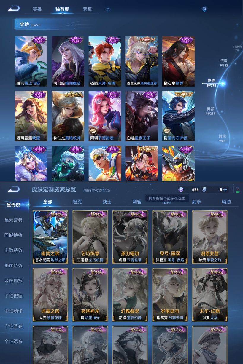 【传说皮肤】 浮生妄 愿照·山河定 祥瑞亨通 愿照·九州拓 黄金狮子座 久胜战神 地狱之眼 黄金射手座 怒海麟威