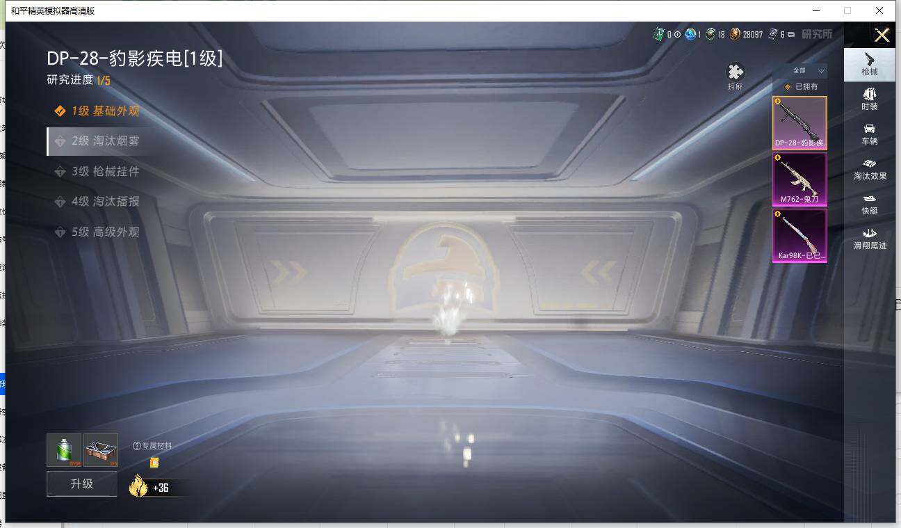 【粉色枪皮等级】:M762-鬼刀(六级),Kar98K-巳巳如意(一级),DP-28-豹影疾电(一级)