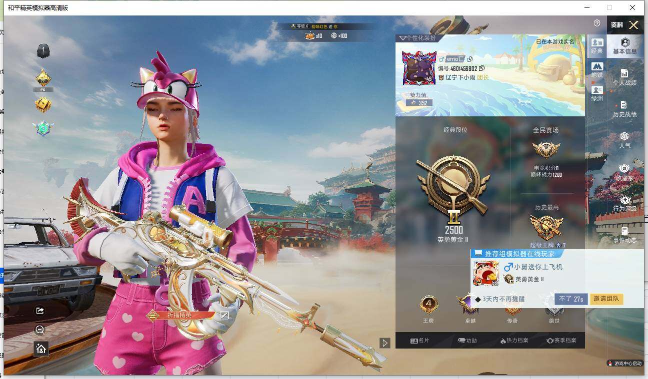 安卓 手Q-1粉装-3特效枪-0载具-1粉色飞行器-17038热力值-4王牌印记-43套装-54枪皮