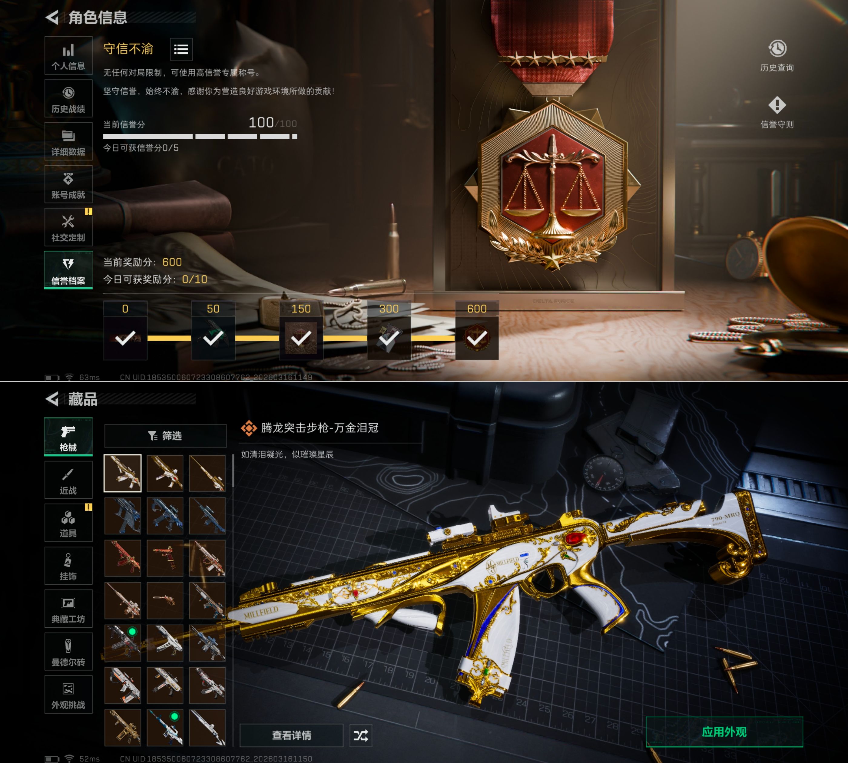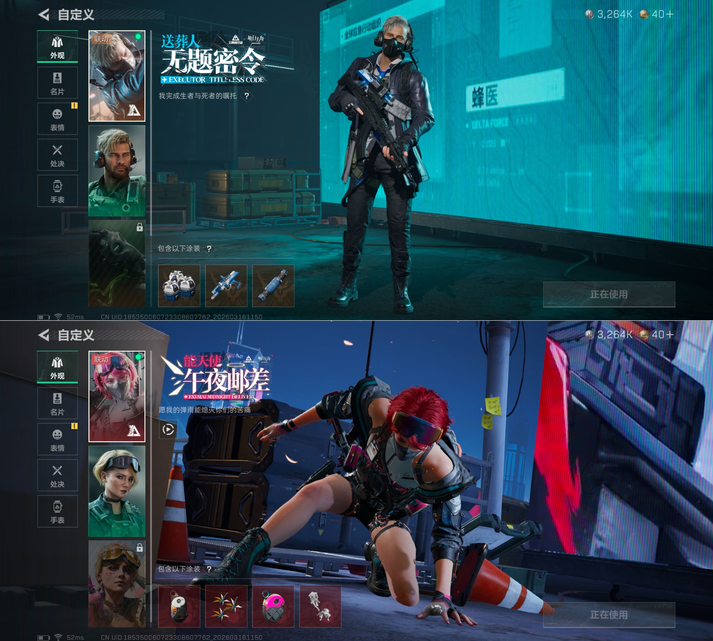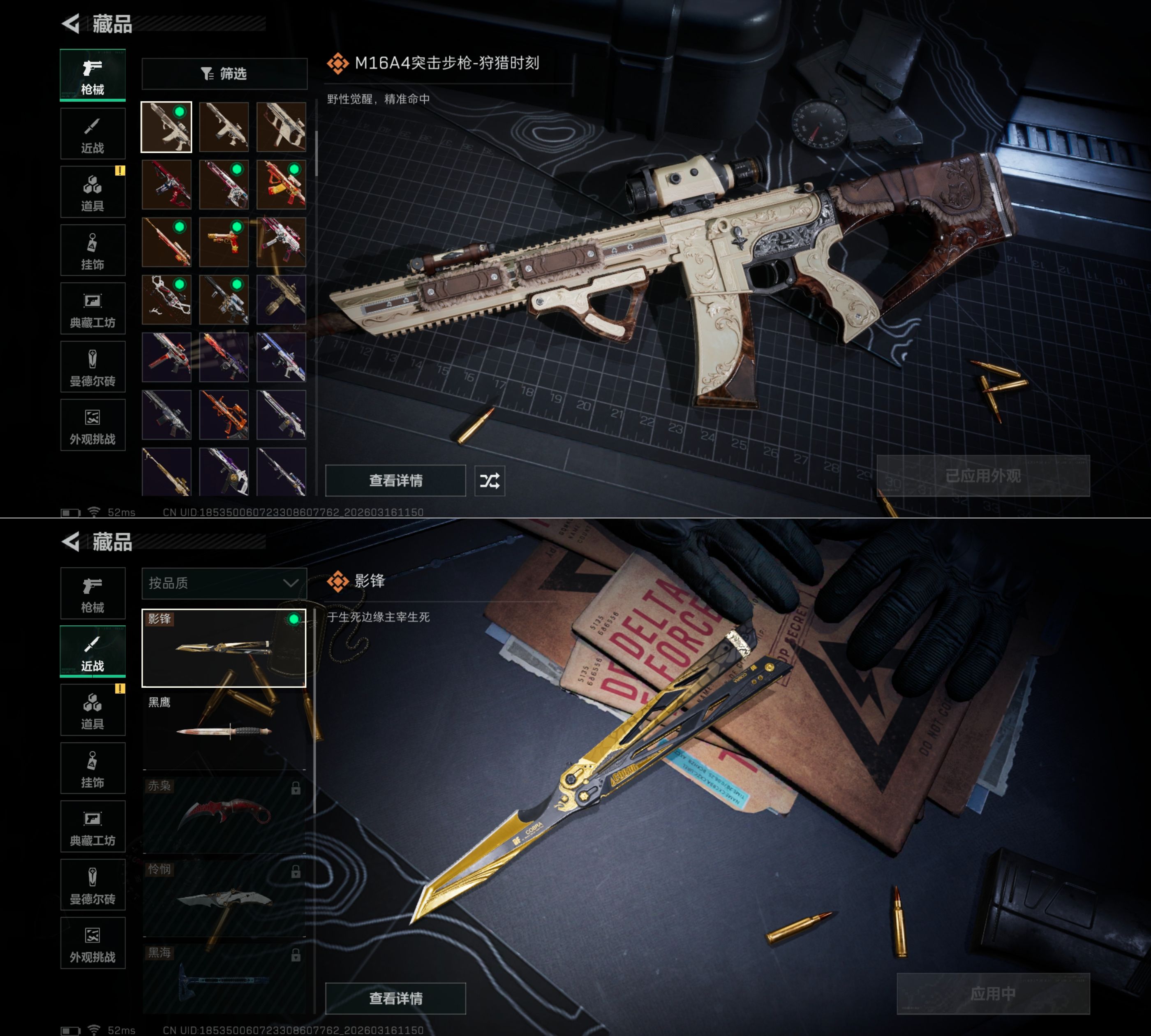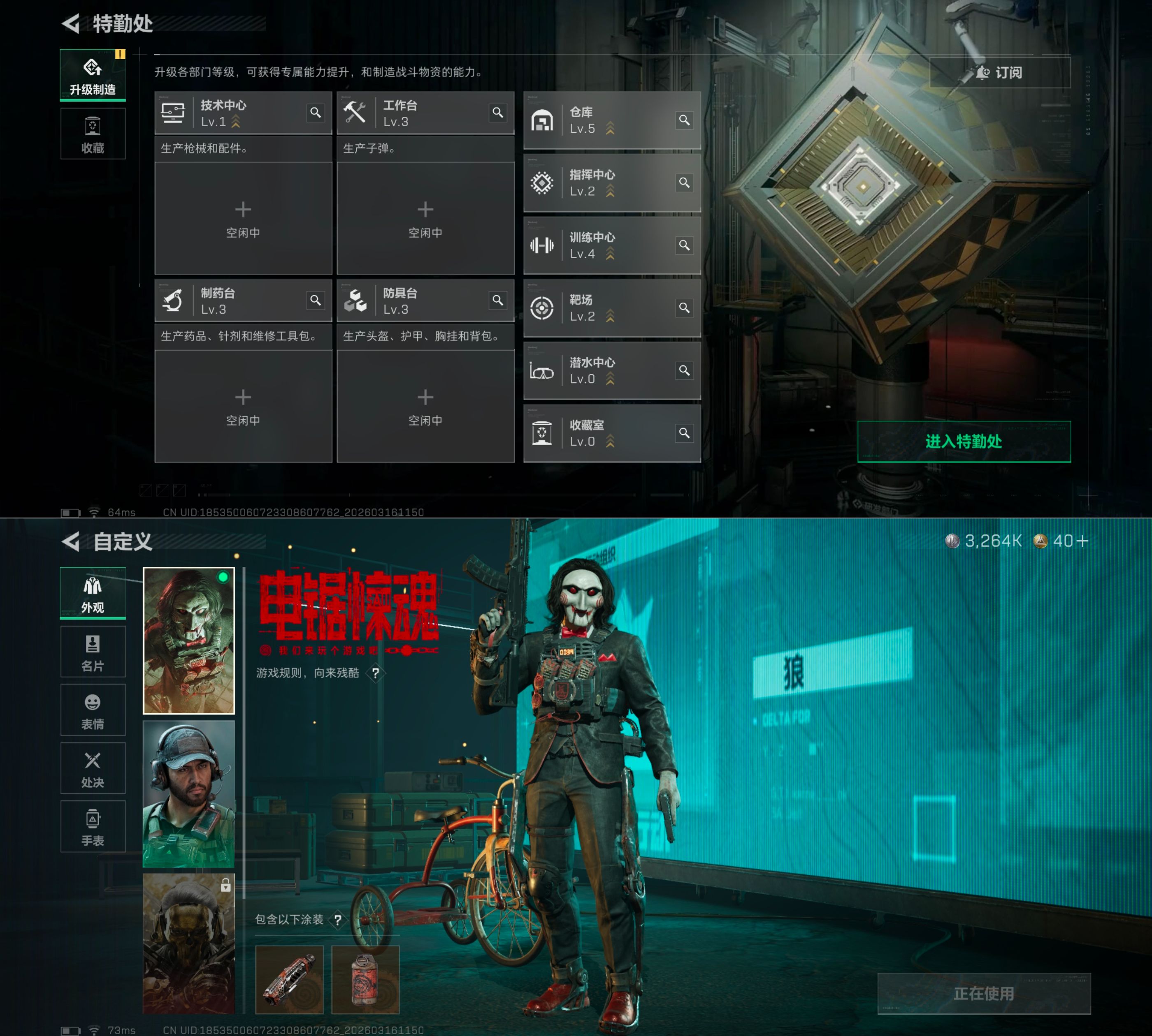 MSJ3819【5干员 红皮能天使午夜邮差 热门刀皮影锋 32金枪】无二次包【总资产(M)】14.8【哈夫币】3264k【行动等级】60【烽火地带段位】钻石【干员皮肤】 露娜-金牌射手 红狼-电锯惊魂 蜂医-送葬人·无题密令 蛊-能天使·午夜邮差 深蓝-不破誓约 【近战武器】 黑鹰 影锋 【枪皮】AKM突击步枪-淘金者 M4A1突击步枪-粉色涂装 M4A1突击步枪-高雅黑 M4A1突击步枪-海色 M4A1突击步枪-繁盛 M4A1突击步枪-阿米娅 AKM突击步枪-彩墨喷涂 AKM突击步枪-战术演练