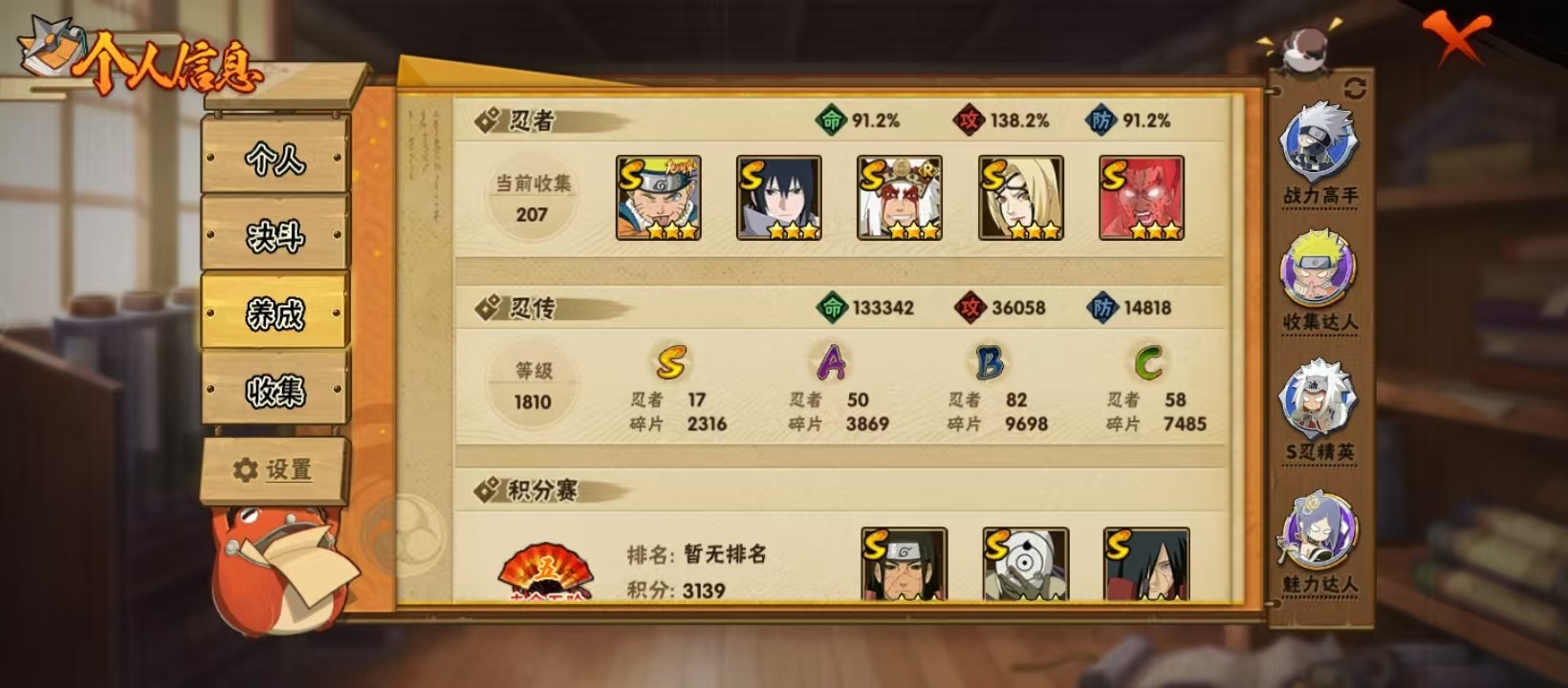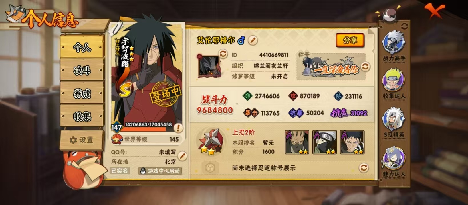 ]V11 17S忍 50A忍 20通灵 968.4W战力 可二
