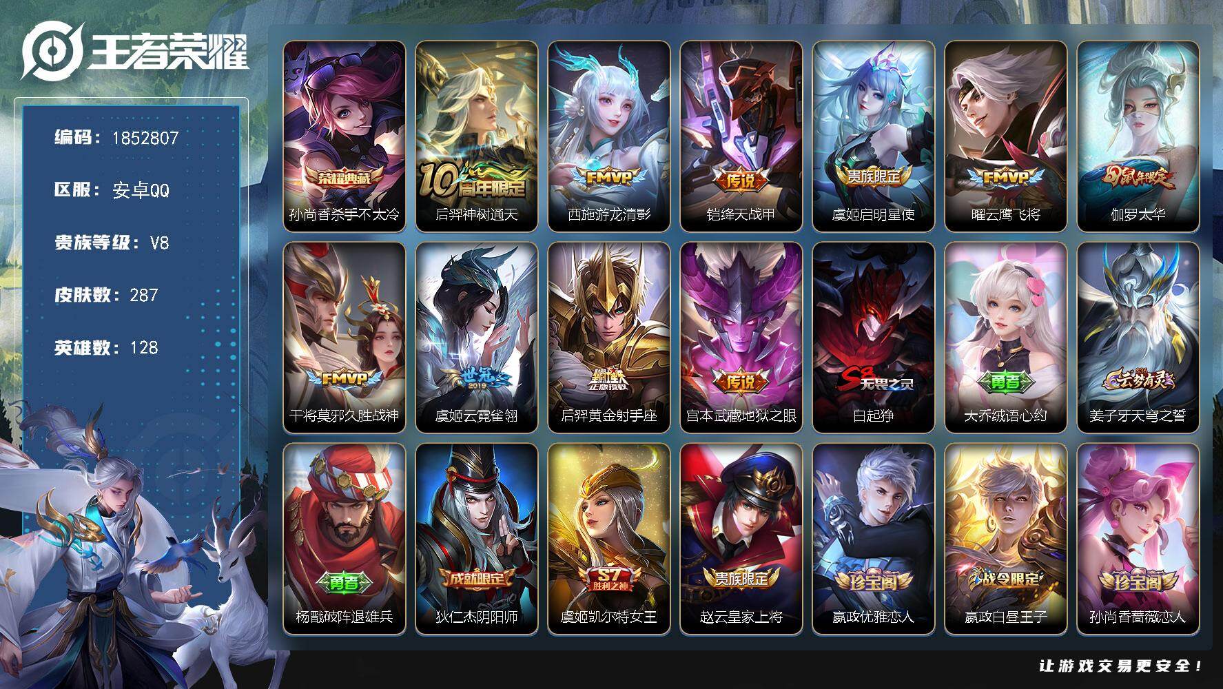 W15193 可立即换绑无需挂单养号 铭文满级 典藏1 传说10 按键9 夺宝280 安卓Q-V8-至尊星耀II段位-128英雄-287皮肤-1典藏皮肤-10传说-80史诗