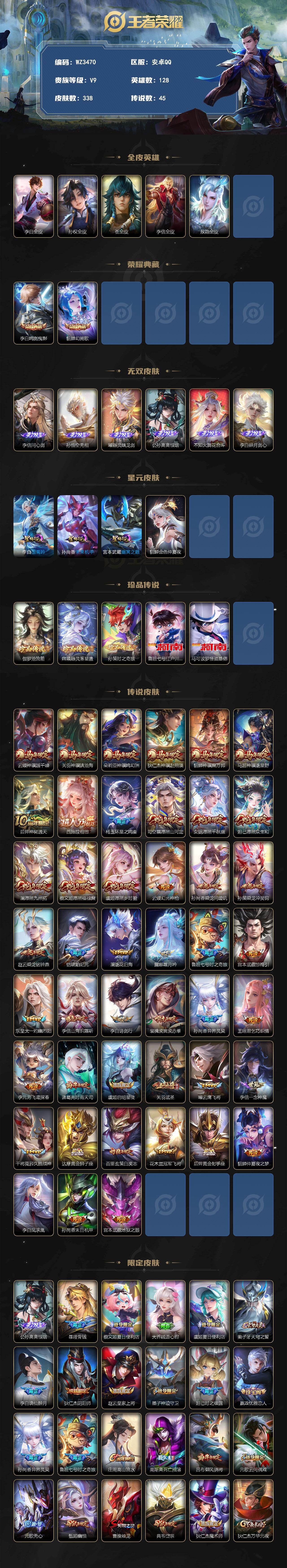 【秒换绑】安卓Q-V9-最强王者段位-128英雄-338皮肤-2典藏皮肤-6无