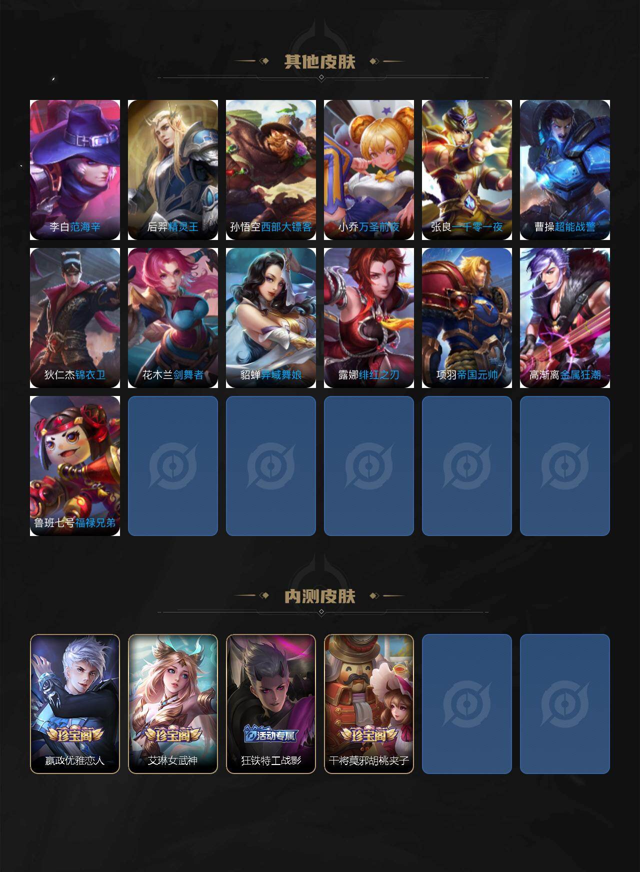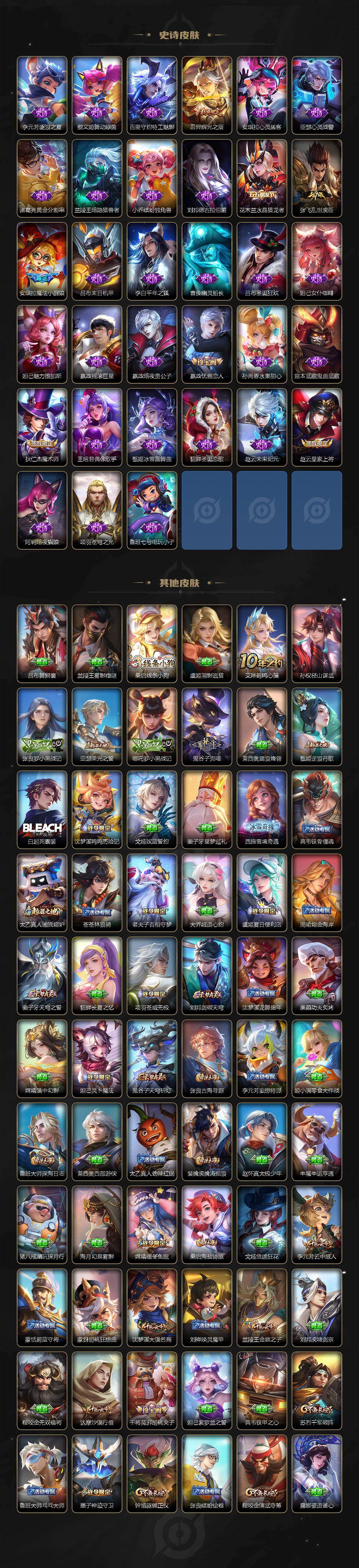 【英雄全皮】:李白全皮,孙权全皮,苍全皮,李信全皮,敖隐全皮