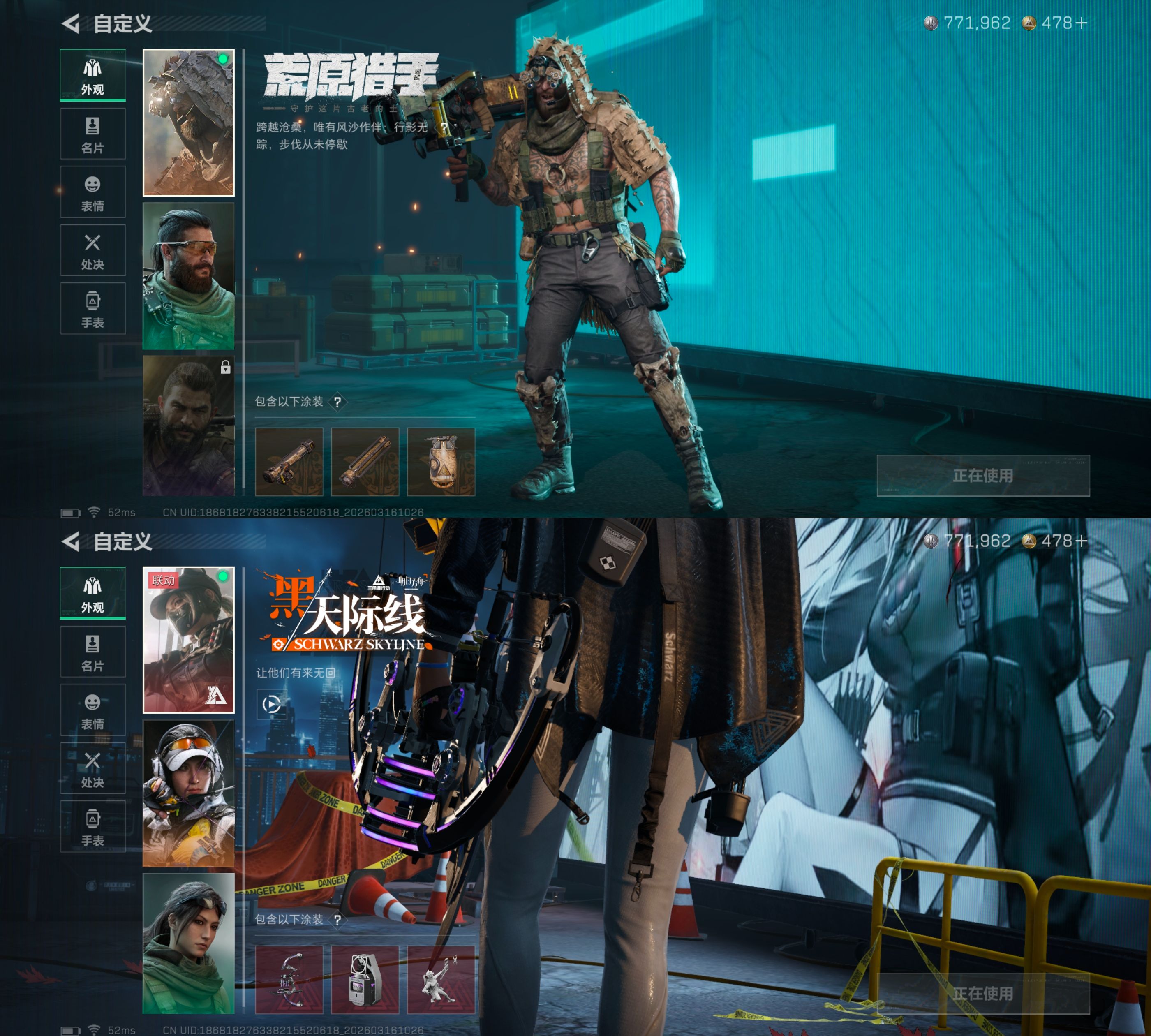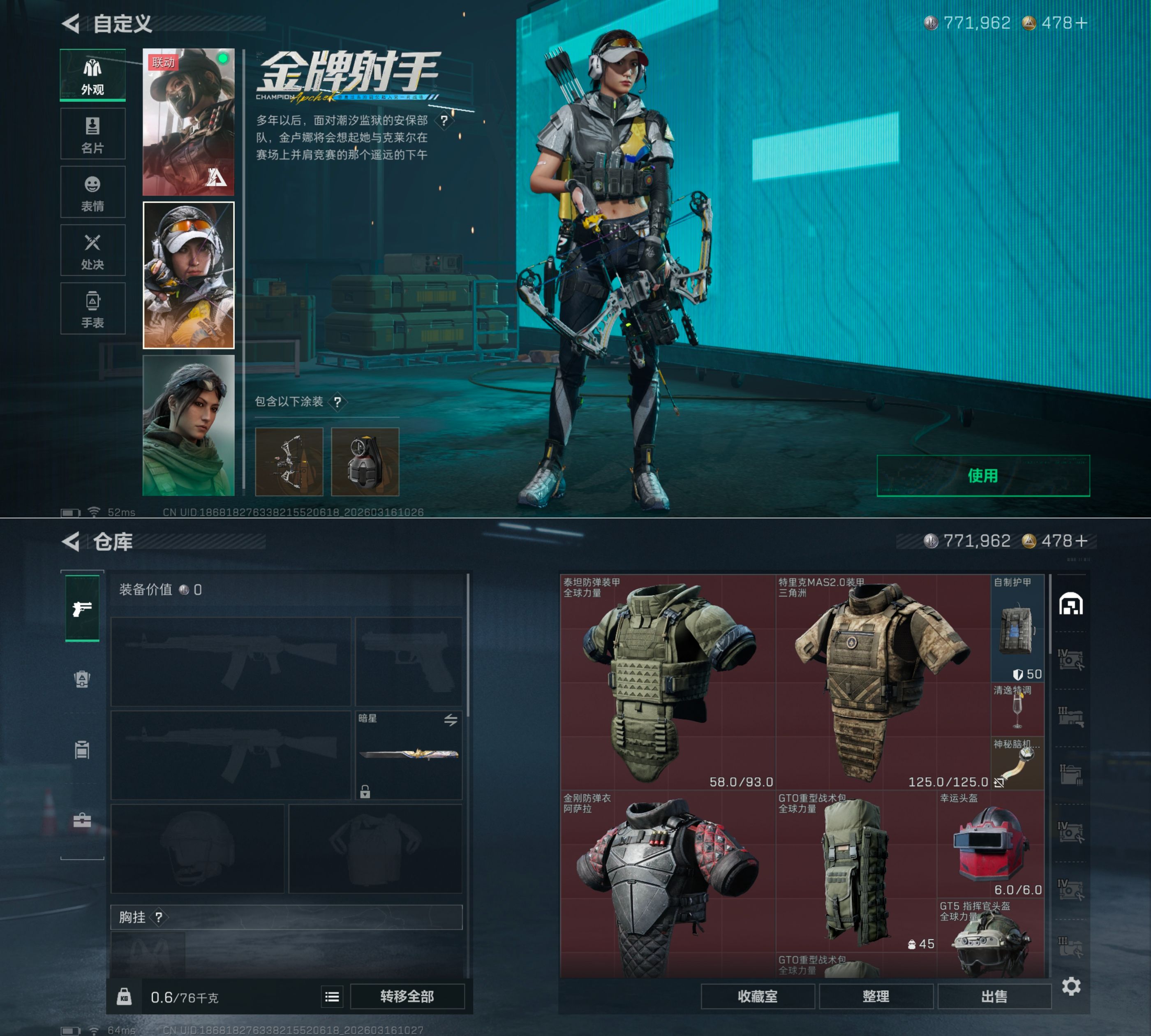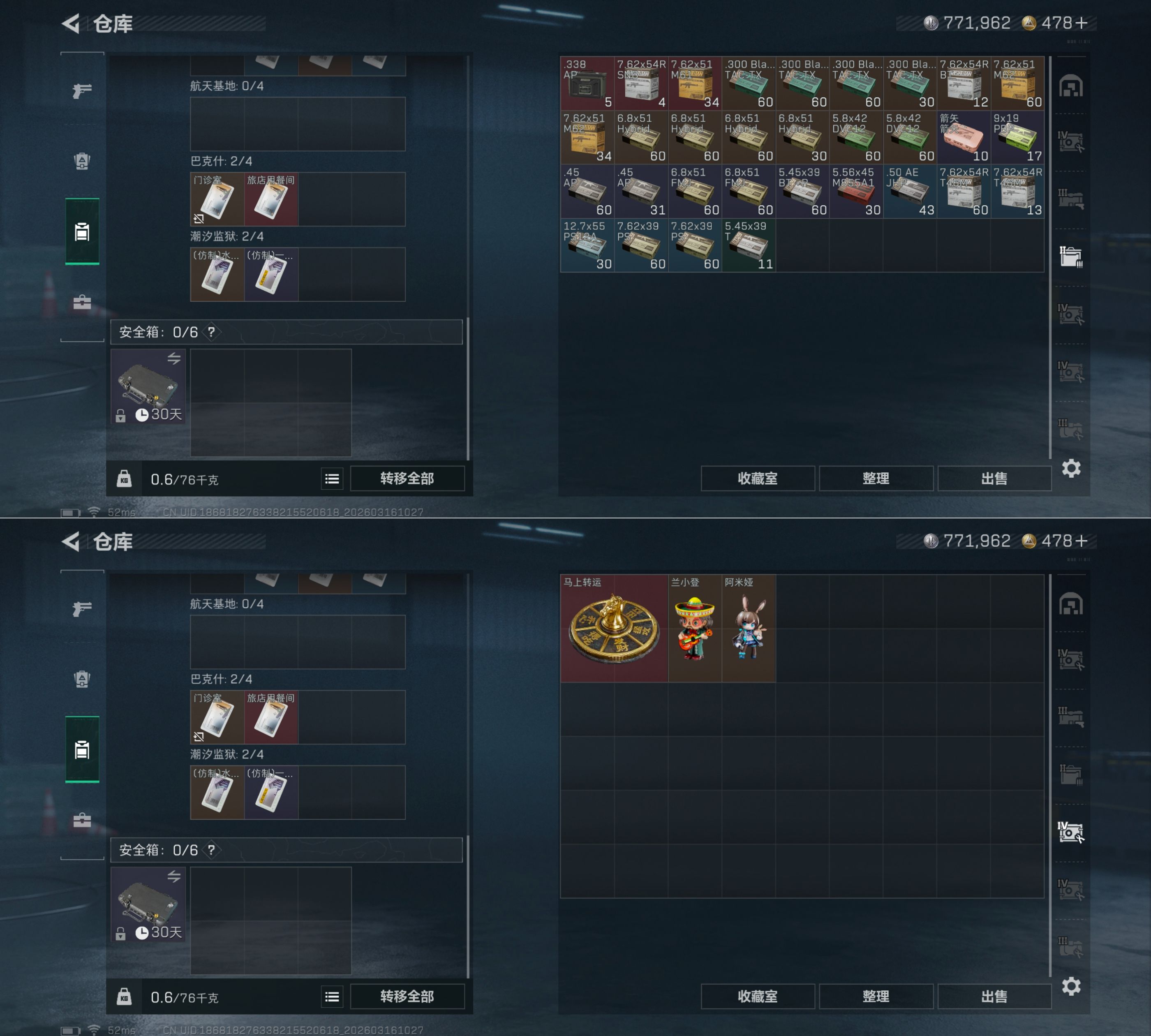 MSJ3818【94M资产 4干员黑天际线 处刑者 暗星】无二次【总资产(M)】94.68【哈夫币】771k【行动等级】60【烽火地带段位】黑鹰【干员皮肤】 露娜-金牌射手 露娜-黑·天际线 红狼-电锯惊魂 乌鲁鲁-荒原猎手 【近战武器】 黑鹰 处刑者 暗星 【枪皮】AK-12突击步枪-淘金者 PTR-32徒步几千-噬菌体 M4A1突击步枪-千里骏骨 M4A1突击步枪-粉色涂装 M4A1突击步枪-高雅黑 M4A1突击步枪-海色 M4A1突击步枪-繁盛 M4A1突击步枪-阿米娅 M4A1突击步枪-
