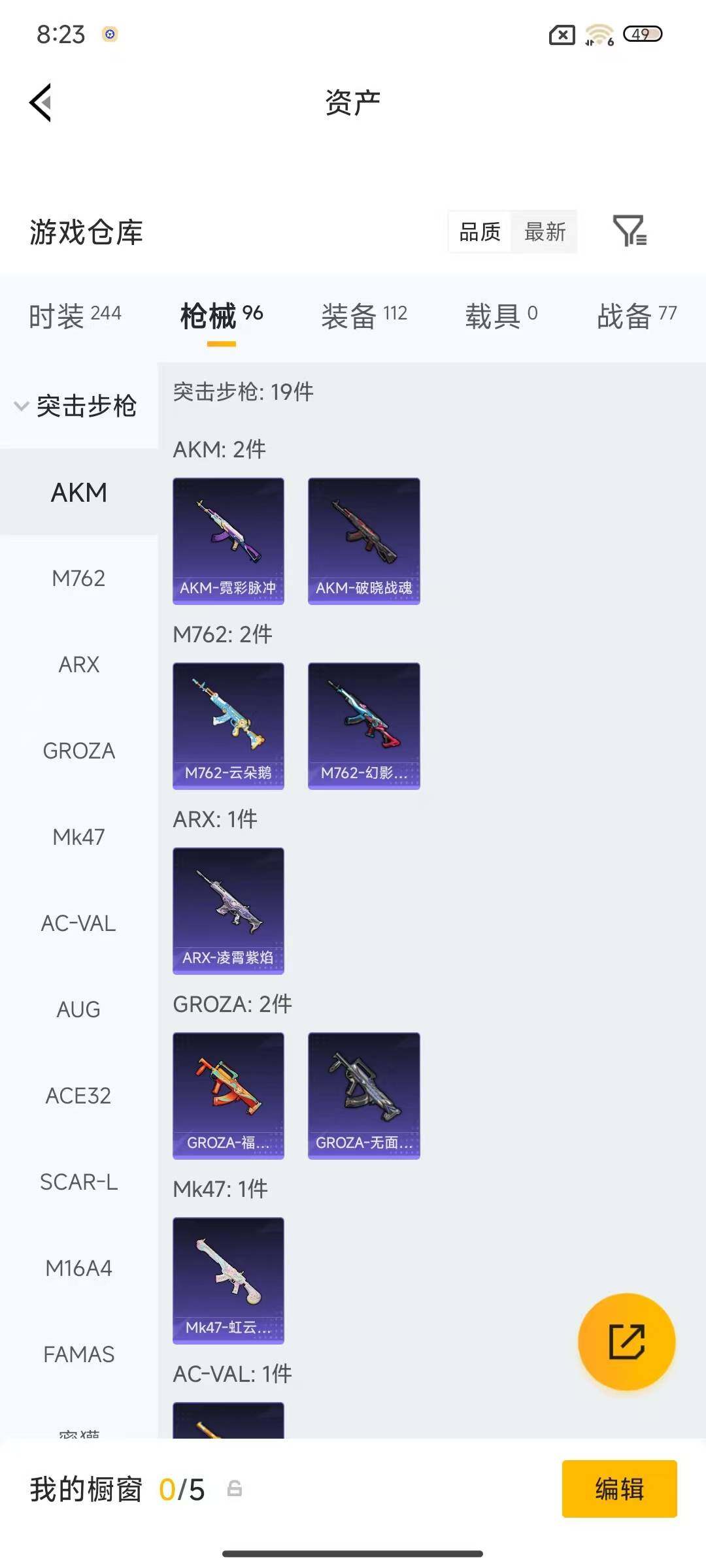 64套装/枪械8/装备112/战备77/王牌印记5/热力值27019/