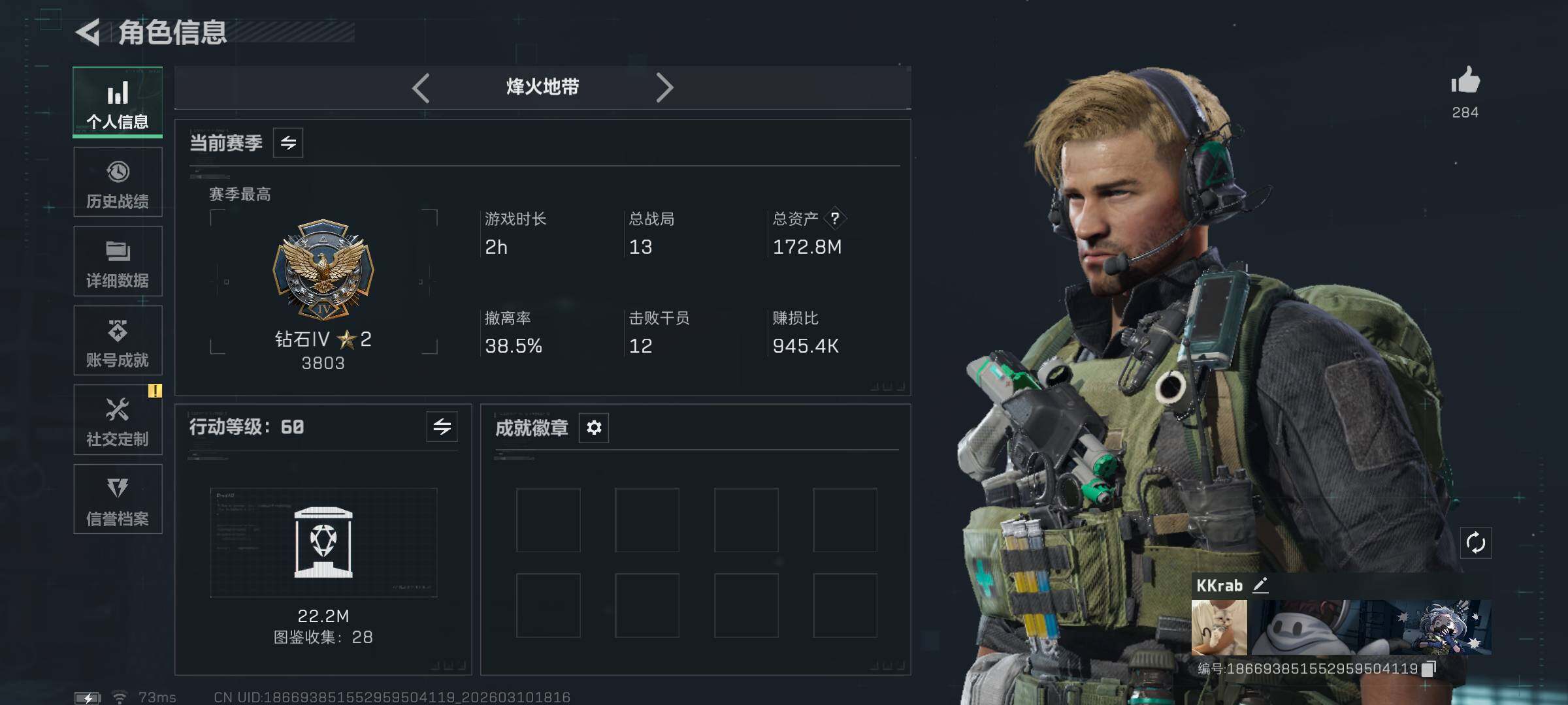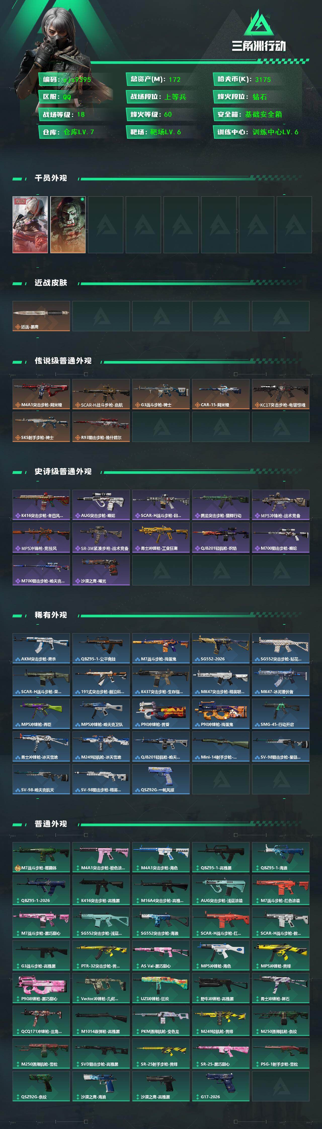 172m总资产-3175k哈伏币-60烽火等级-钻石-18战场等级-上等兵