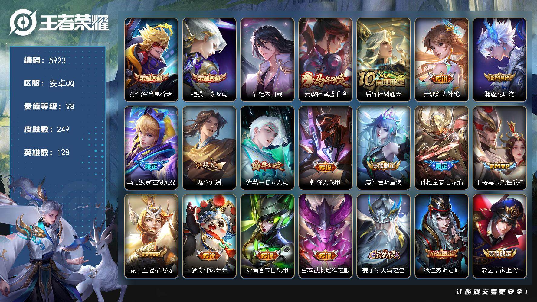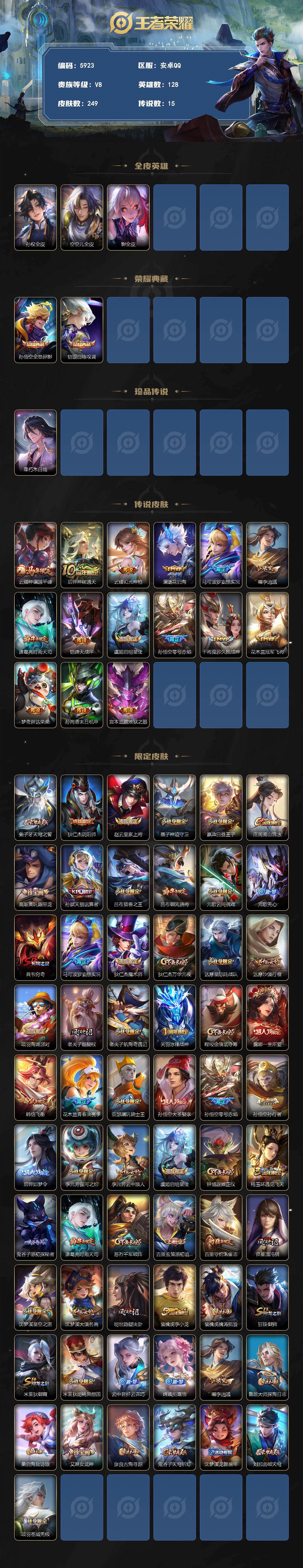 可二次 贵族8-贵族积分66662-249皮2典藏15传说0无双1珍品传说 安卓手Q280区249皮2典藏15传说0无双1珍品传说V8