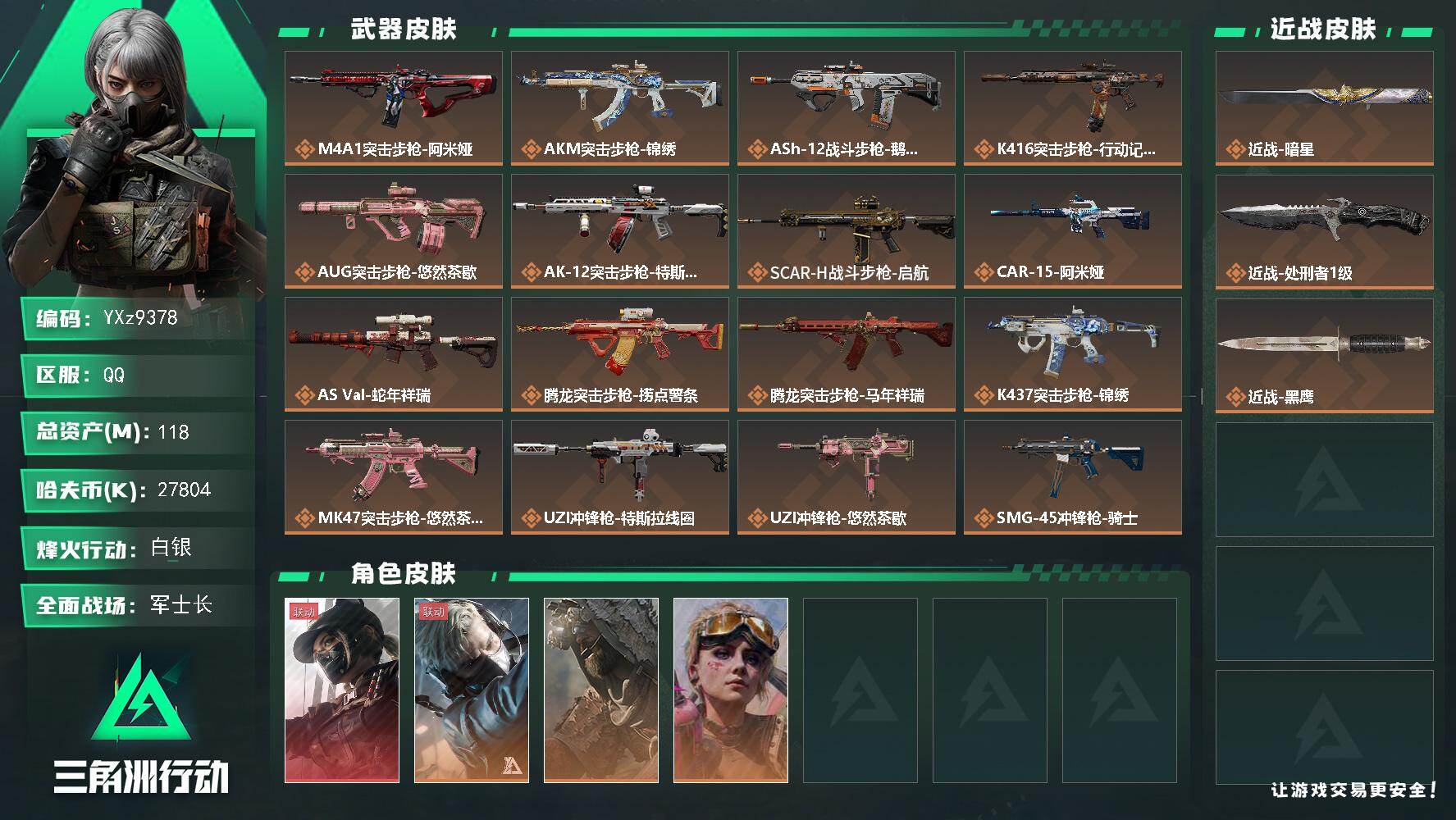 【s8赛季3*3·热门组合搭配,单红+暗星-黑天际线】【Q区三端互通】【可二次】YXz9378-特勤处:仓库7级/靶场0级/训练中心3级118m总资产-2780w哈伏币-60烽火等级-白银-50战场等级-军士长