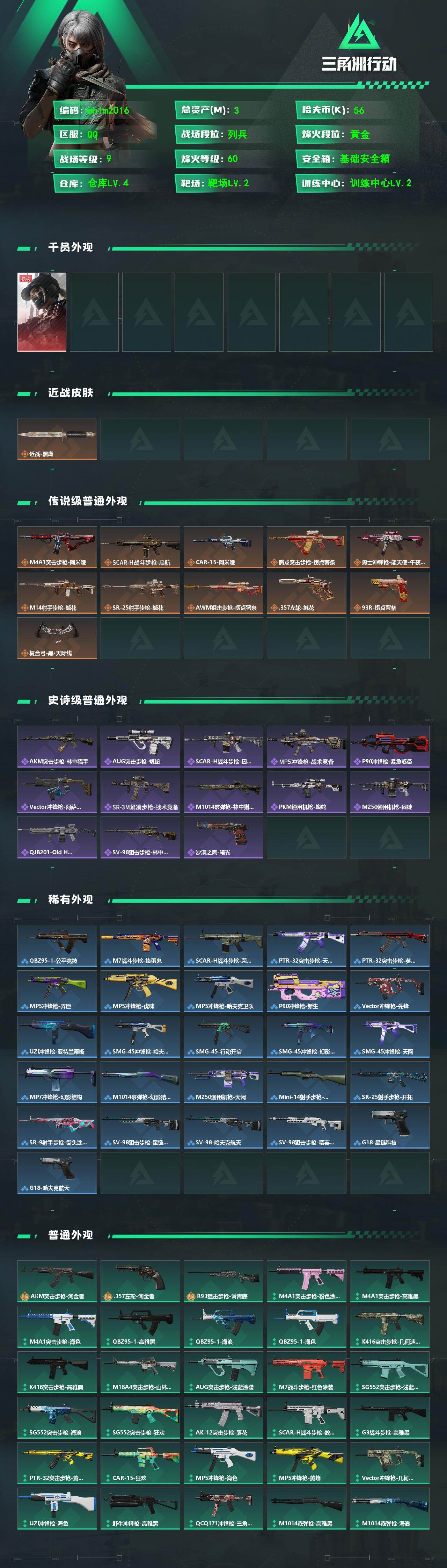 3m总资产-56k哈夫币-60烽火等级-黄金-9战场等级-列兵【干员外观】: