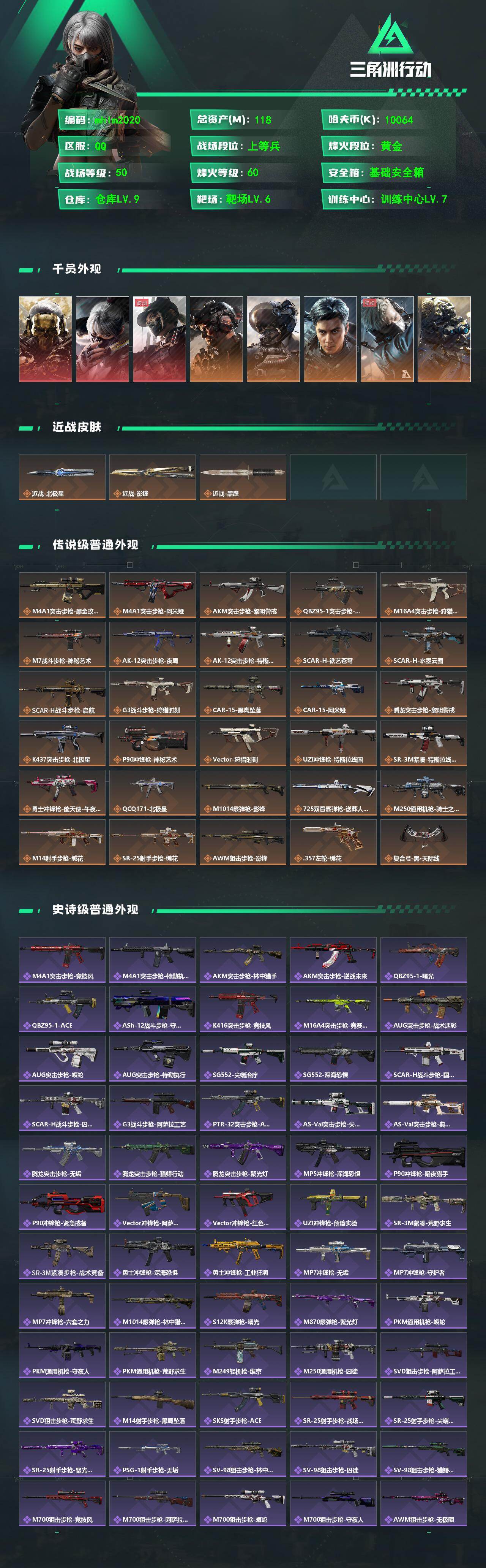 118m总资产-10064k哈夫币-60烽火等级-黄金-50战场等级-上等兵