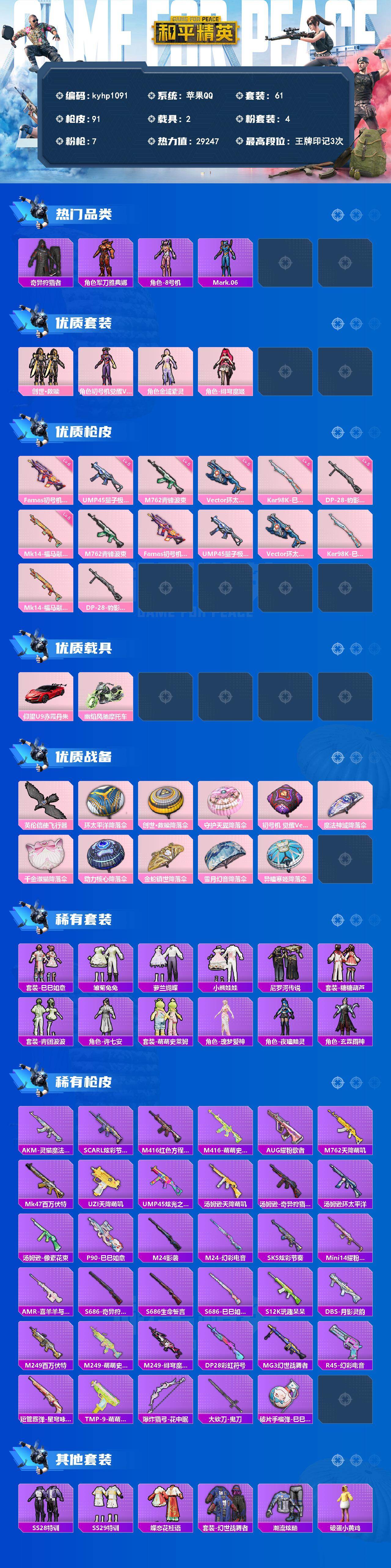 苹果 手Q-4粉装-7特效枪-2载具-1粉色飞行器-29247热力值-3王牌印记-61套装-91枪皮