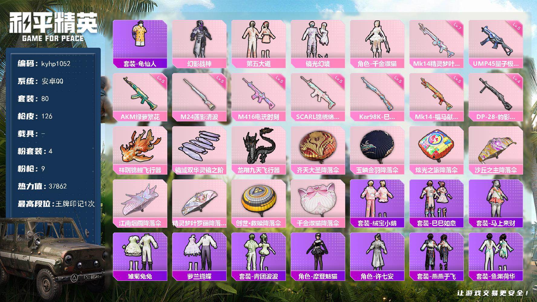 安卓 手Q-4粉装-9特效枪-0载具-3粉色飞行器-3786