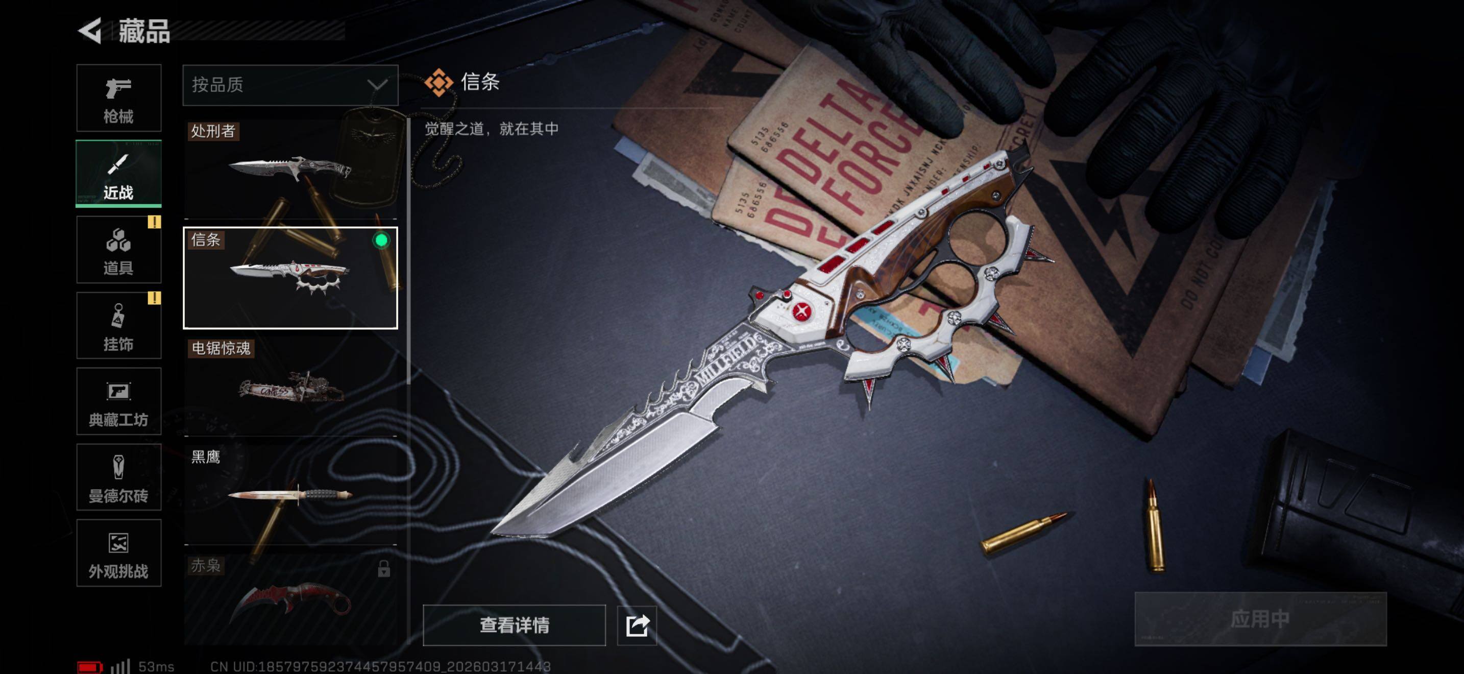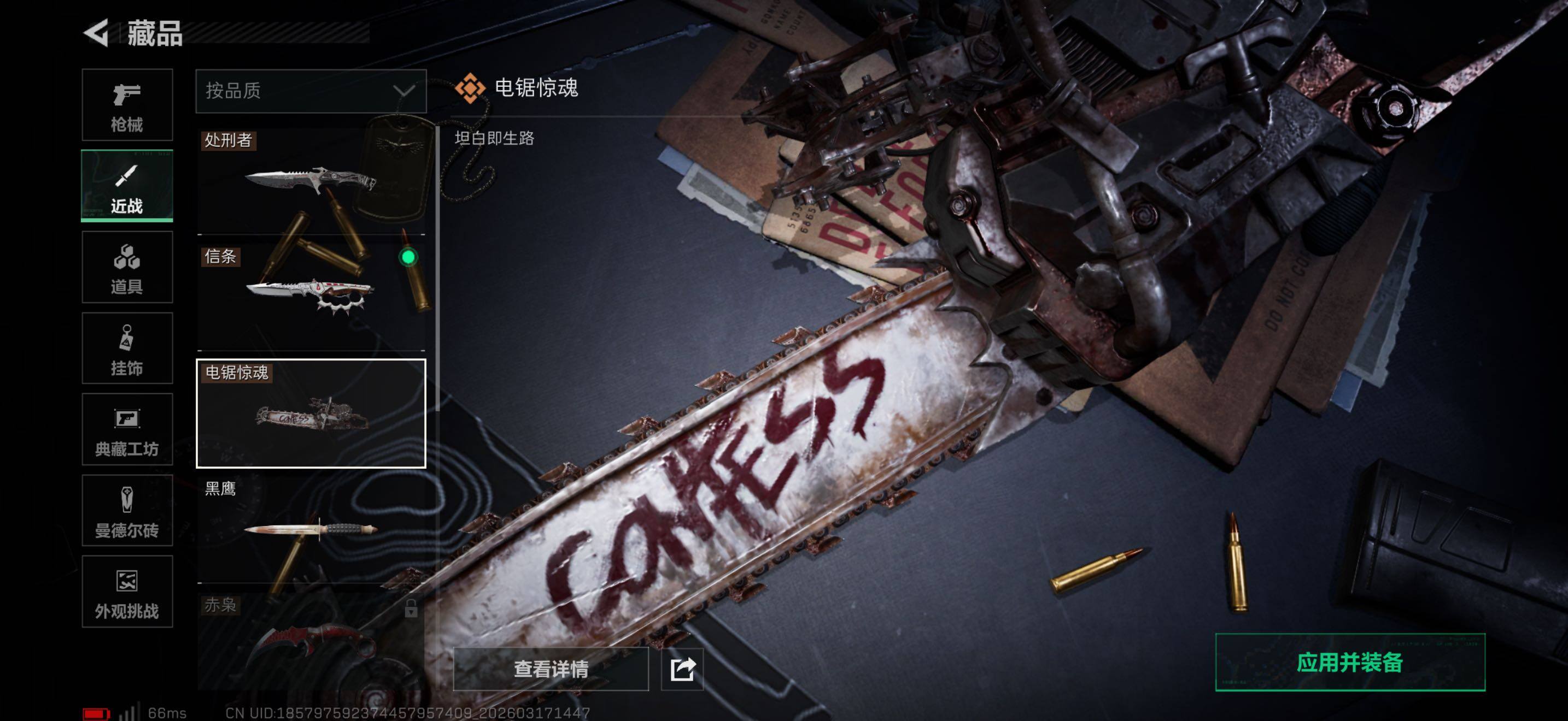 【近战皮肤】:近战-信条,近战-电锯惊魂,近战-处刑者2级,近战-黑鹰