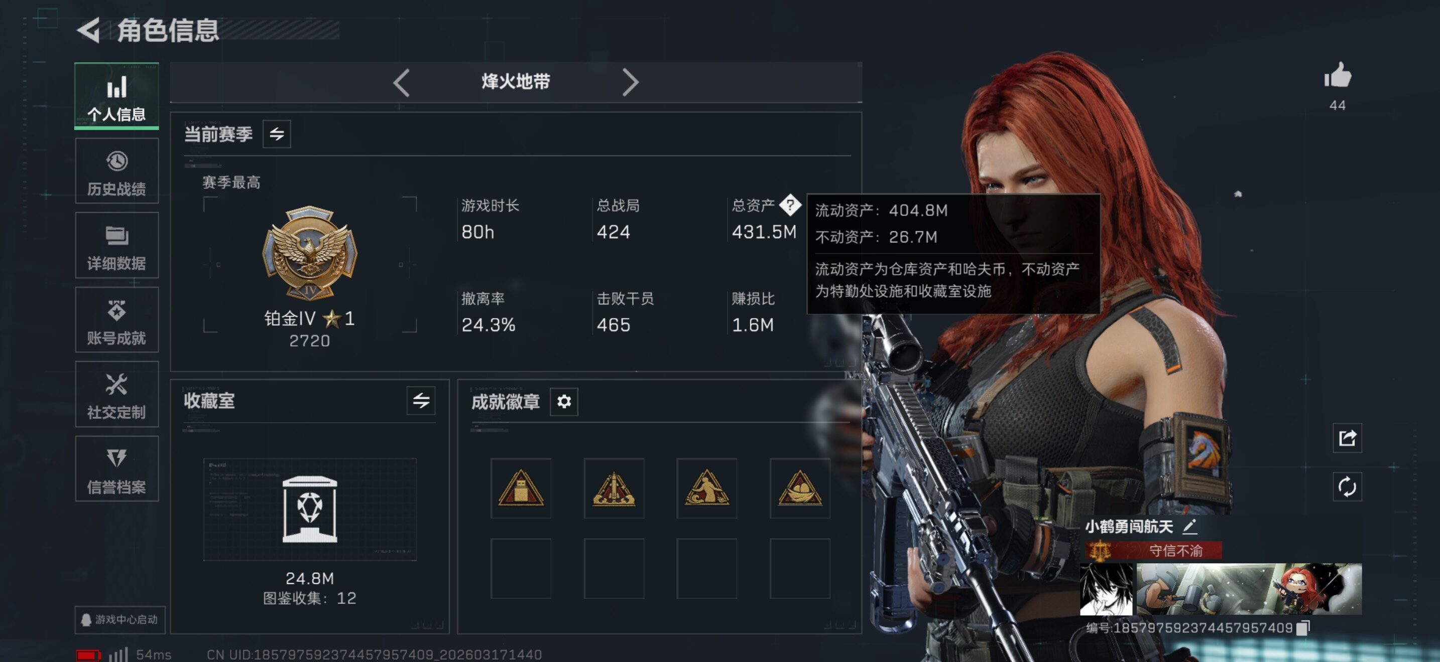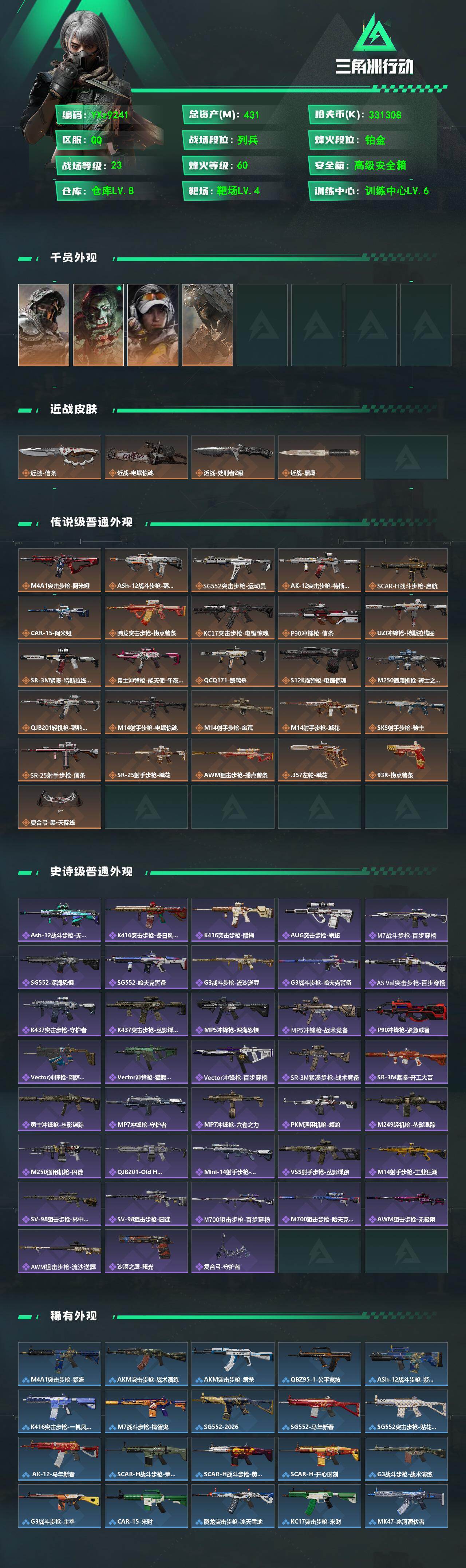 【Q区三端互通】【无二次】YXz9241-特勤处:仓库8级/靶场4级/训练中心6级-总资产431m-哈夫币331m-烽火等级:60级
