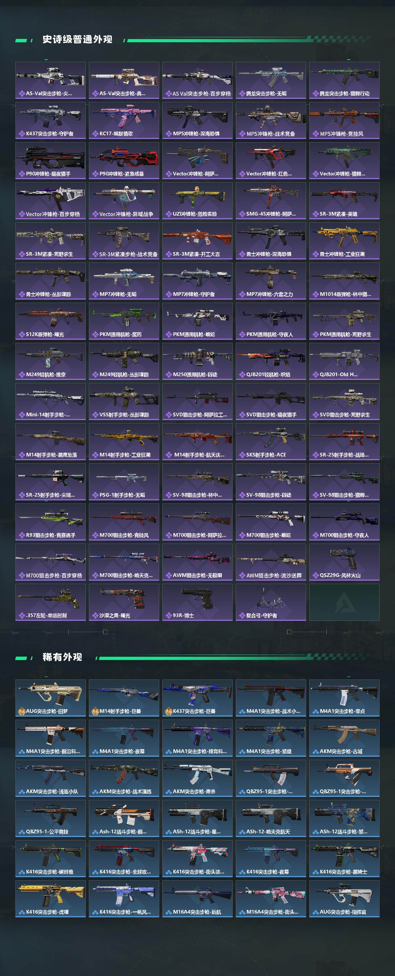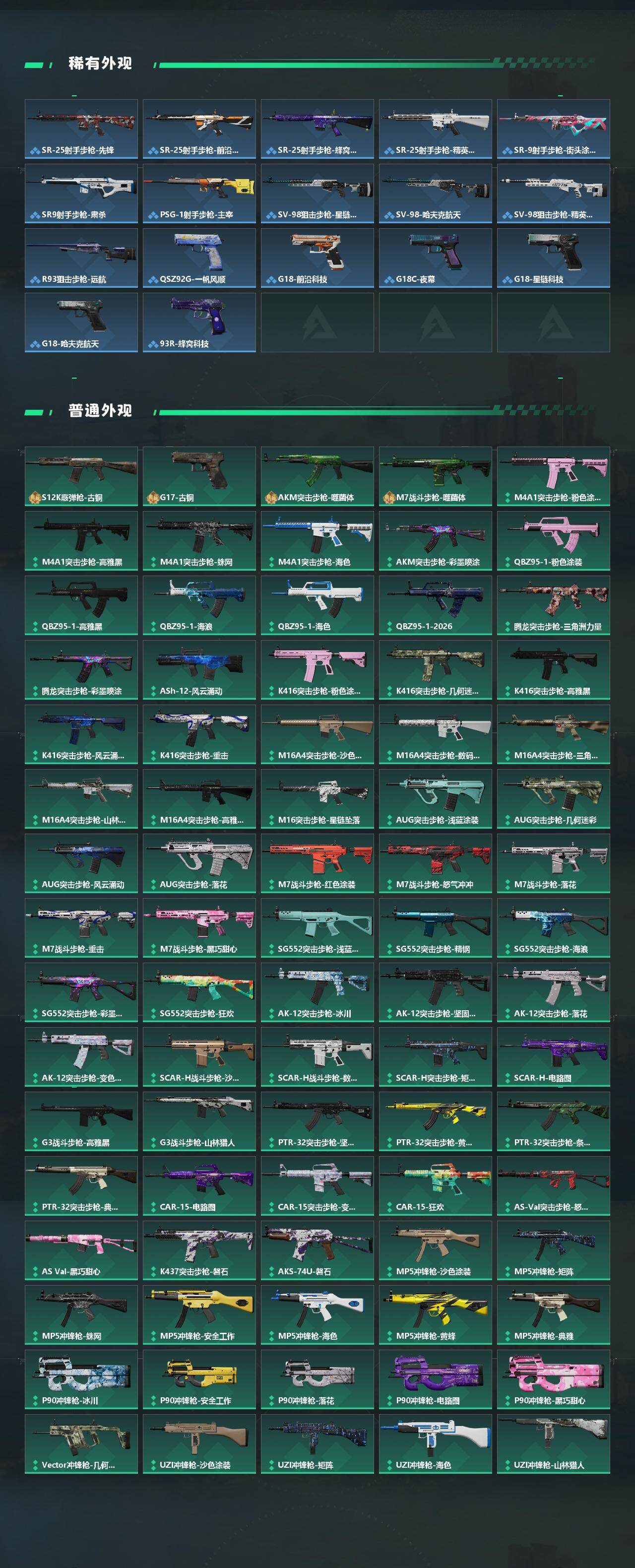 【传说外观】:M4A1突击步枪-蚀金玫瑰,M4A1突击步枪-阿米娅,QBZ95-1突击步枪-破军,QBZ9