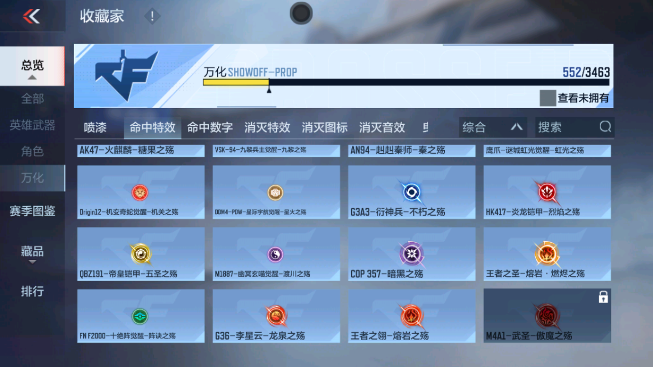 VIP等级:V8,V武器数量:567,V角色数量:18,V总数量:284,王者武器数:10,万化数量:552