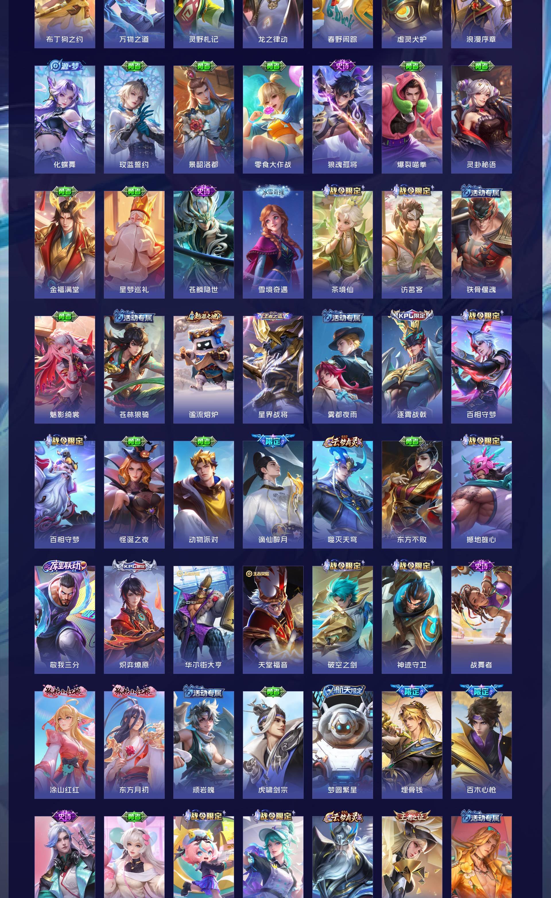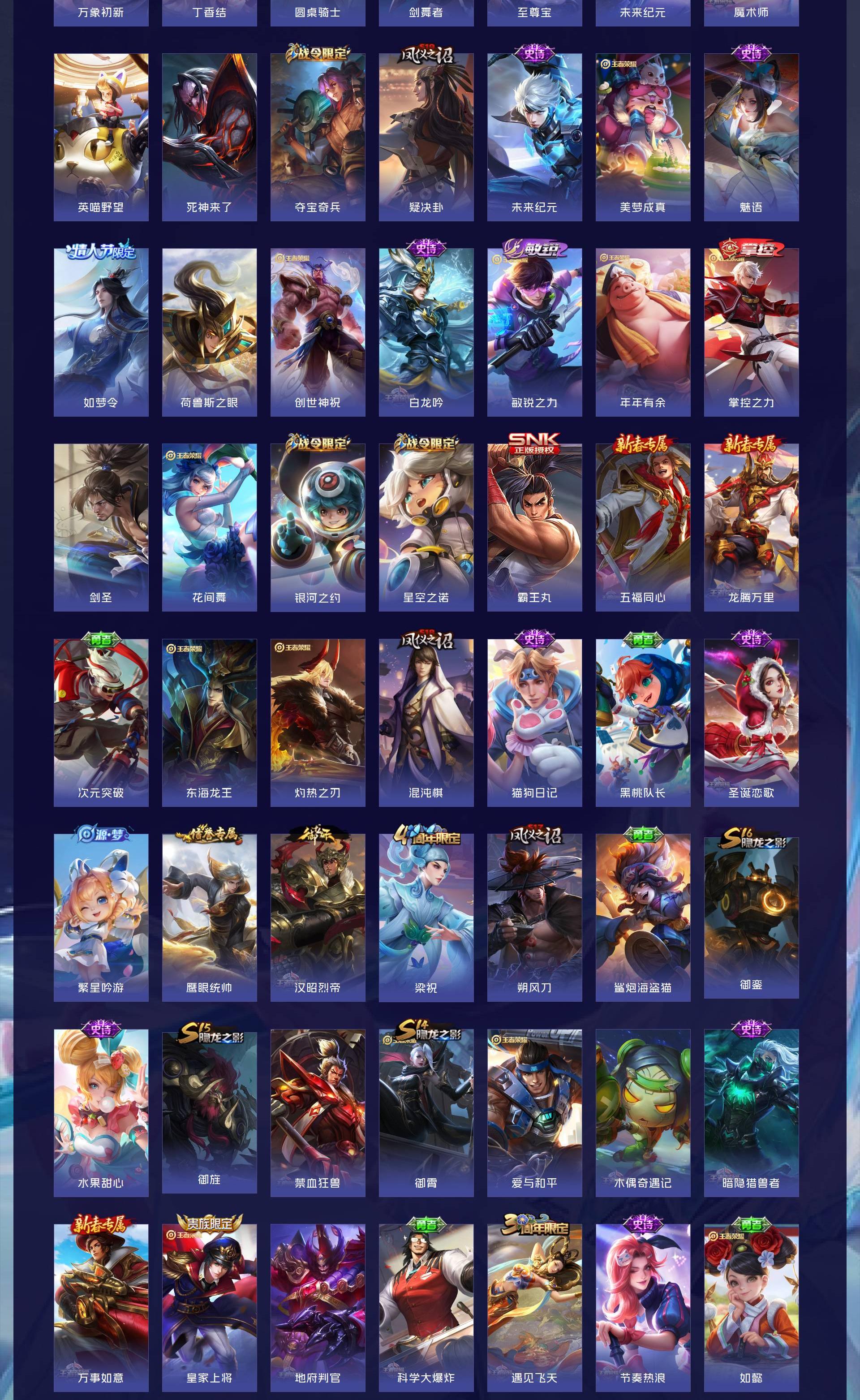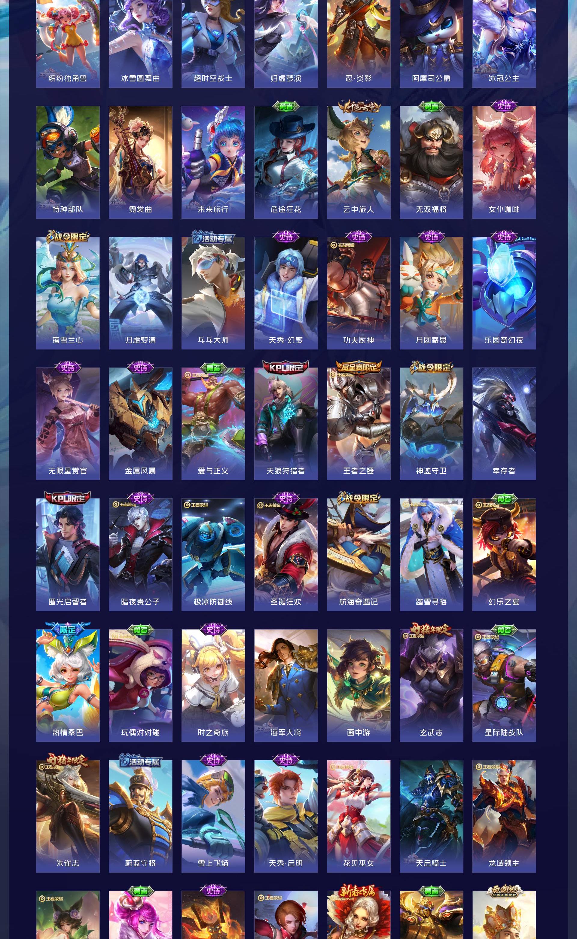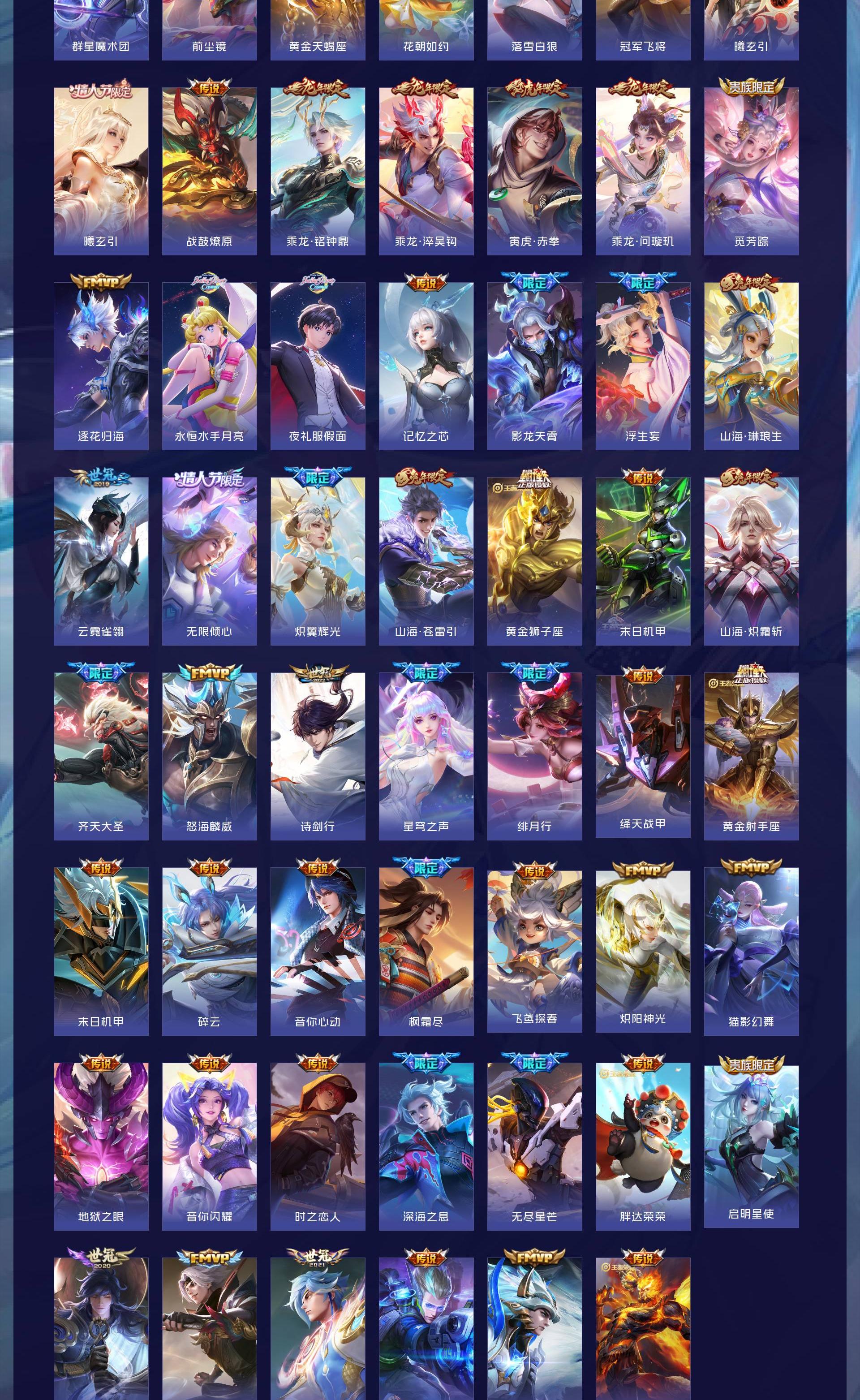 V10 皮肤563 英雄128 荣耀王者 荣耀典藏7 珍品传说4 星传说2 传说70 其他皮肤487