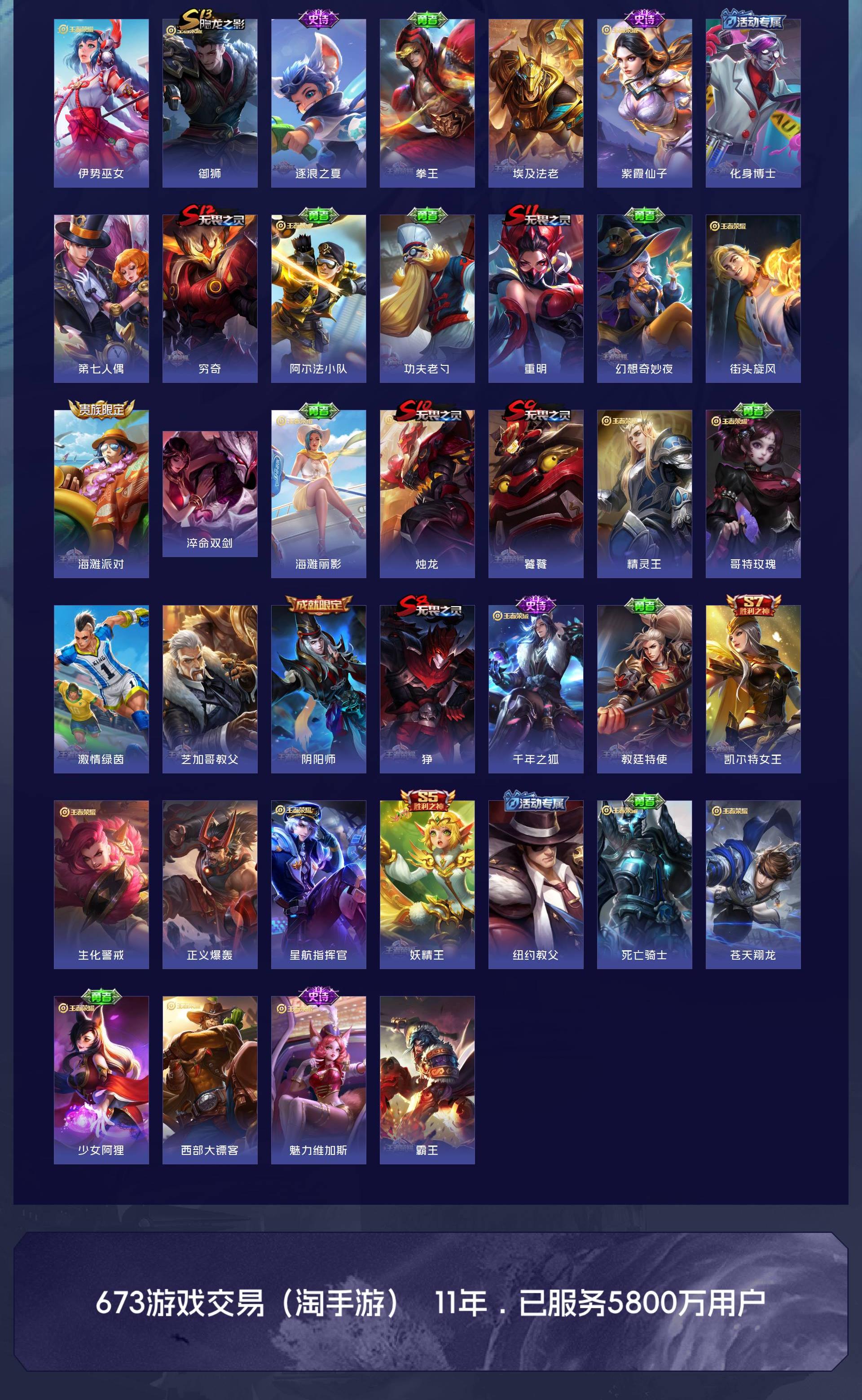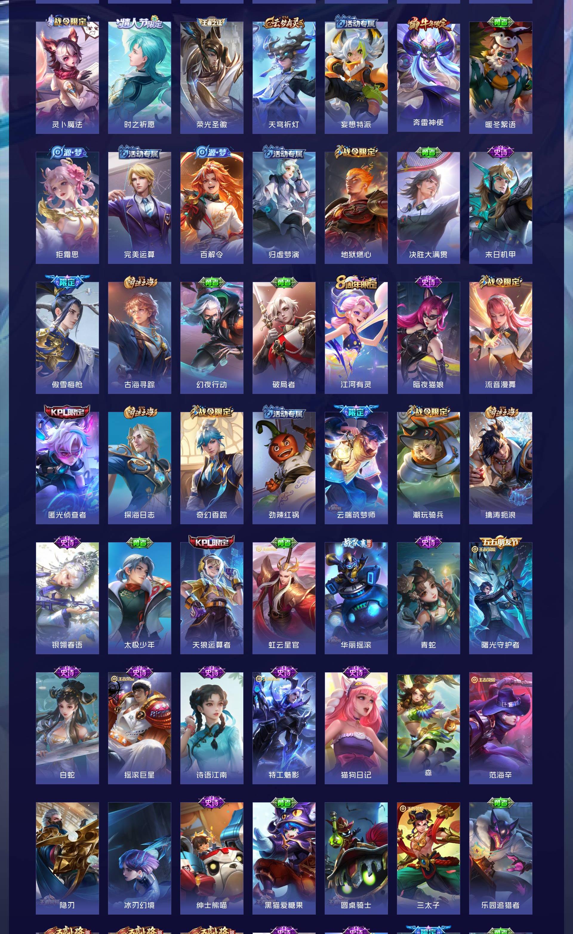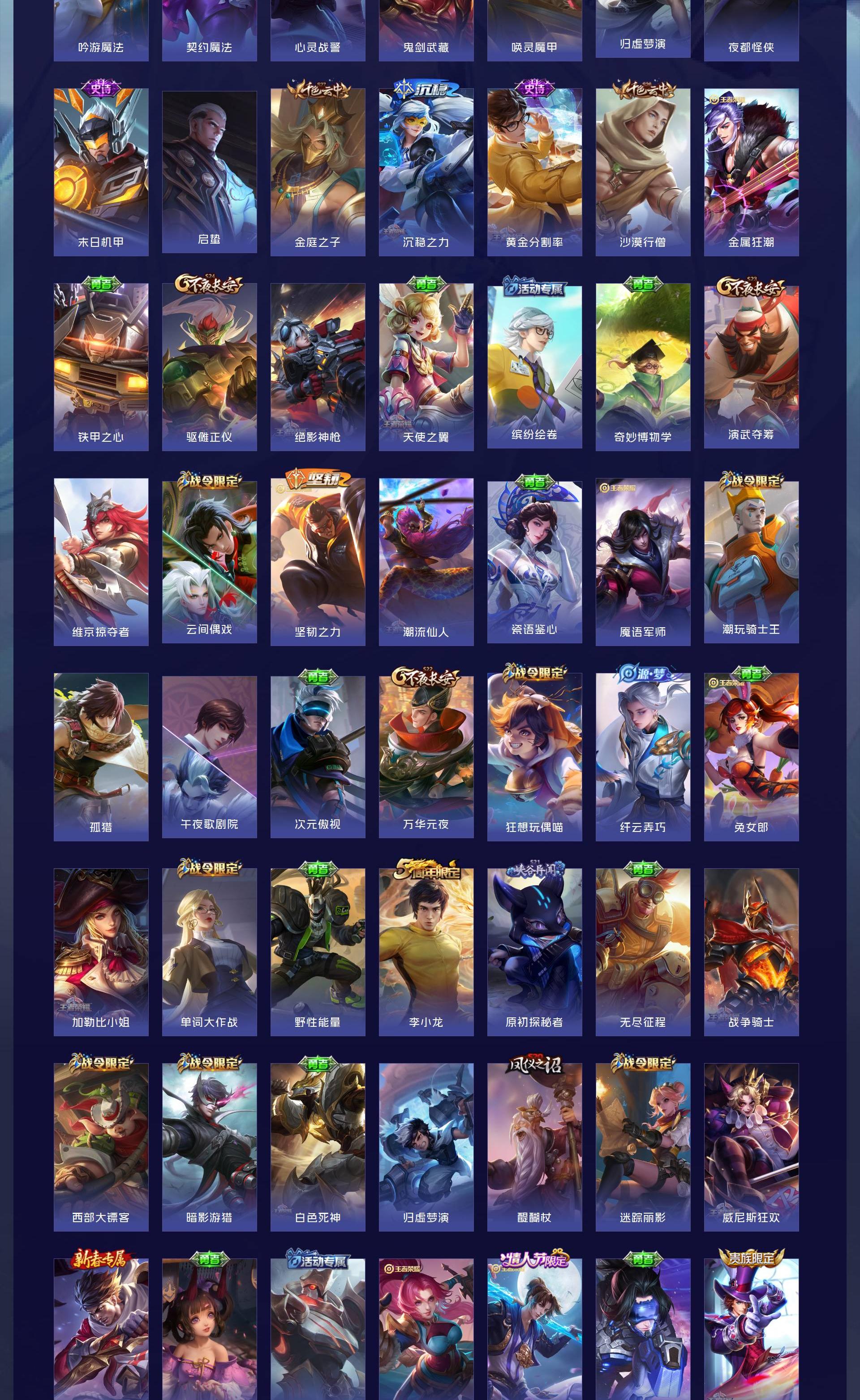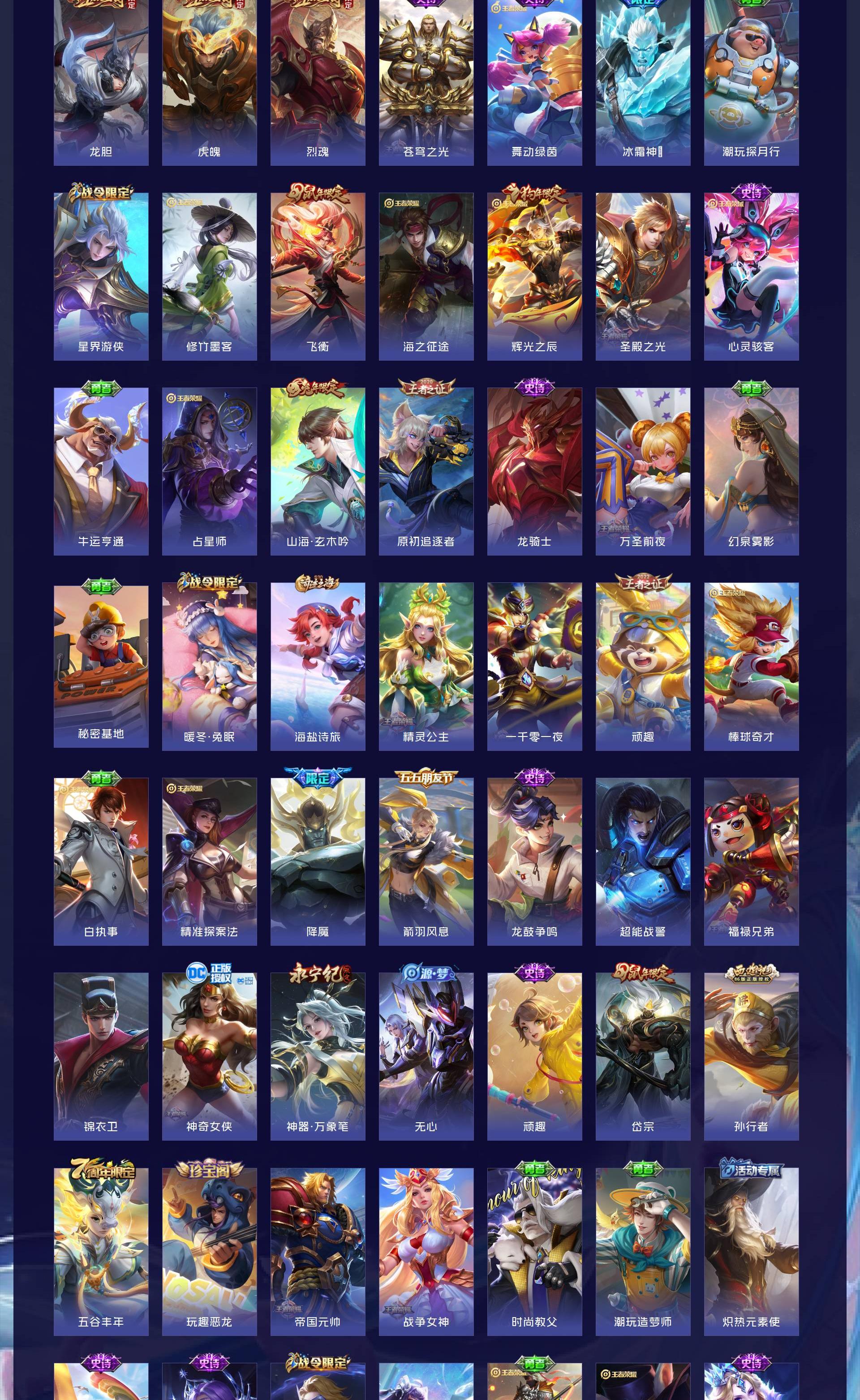 V10 皮肤563 英雄128 荣耀王者 荣耀典藏7 珍品传说4 星传说2 传说70 其他皮肤487