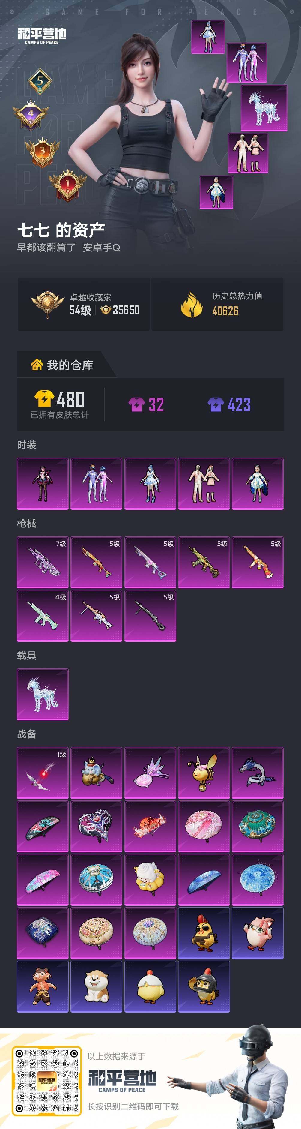 可二次【特价出售/店主推荐】安卓 手Q-5粉装-8特效枪-1载具-5粉色飞行器-40626热力值-5王牌印记-78套装-134枪皮【热门品类】:粉装-梦幻火箭,套装-深海小丑鱼【粉色套装】:粉装-梦幻火箭,角色-洛天依,粉装-第五大道,角色-奇迹舞步 美琪,角色-罪夜之冕【粉色枪皮等级】:Famas-天象三御(七级),汤姆逊-热量炸弹(五级),AKS-74U-森灵之息(五级),Mk14-甜梦熊击