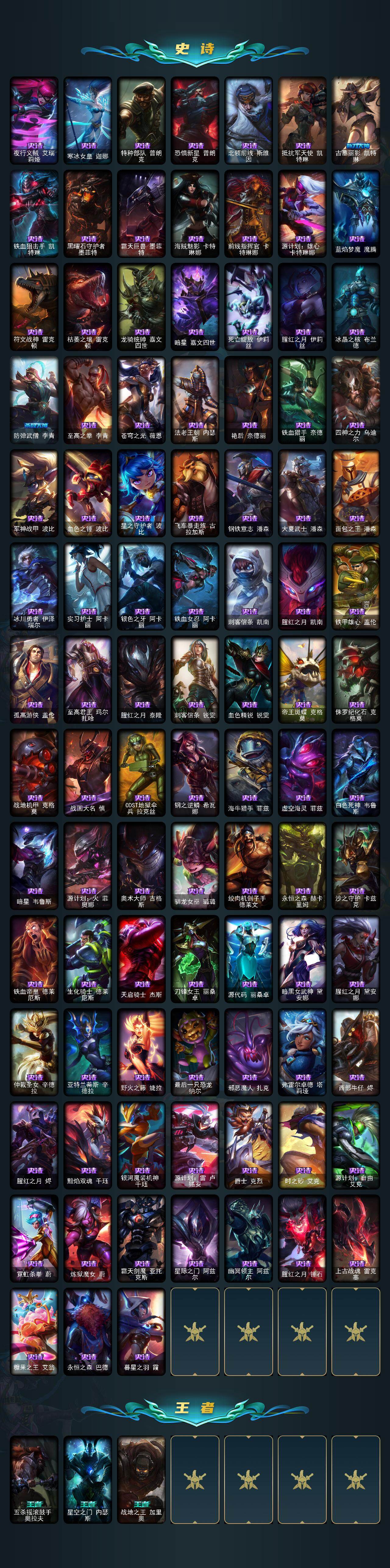 黄金段位-172英雄-621皮肤-528炫彩-1终极-46神话-83限定-68传说-122史诗