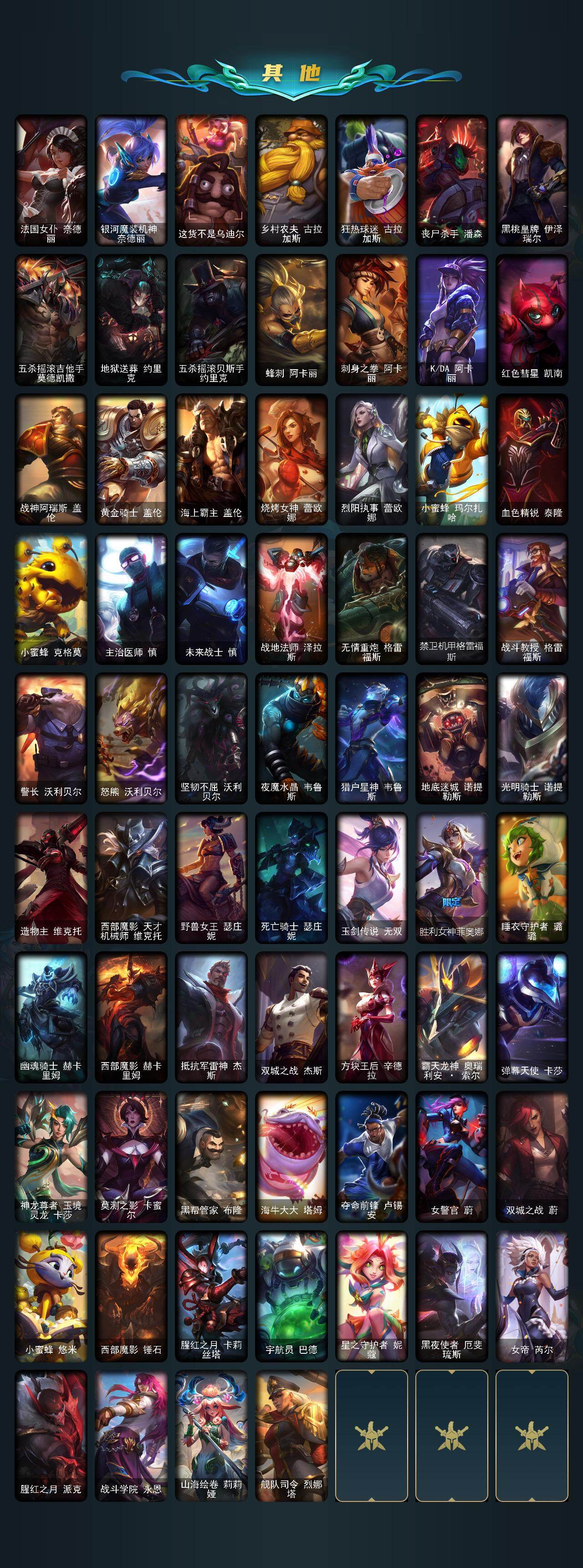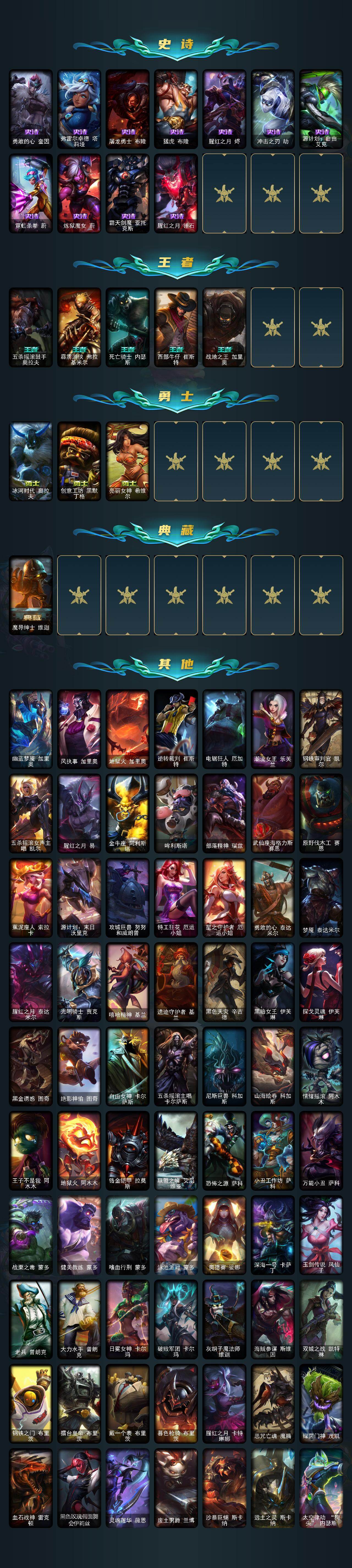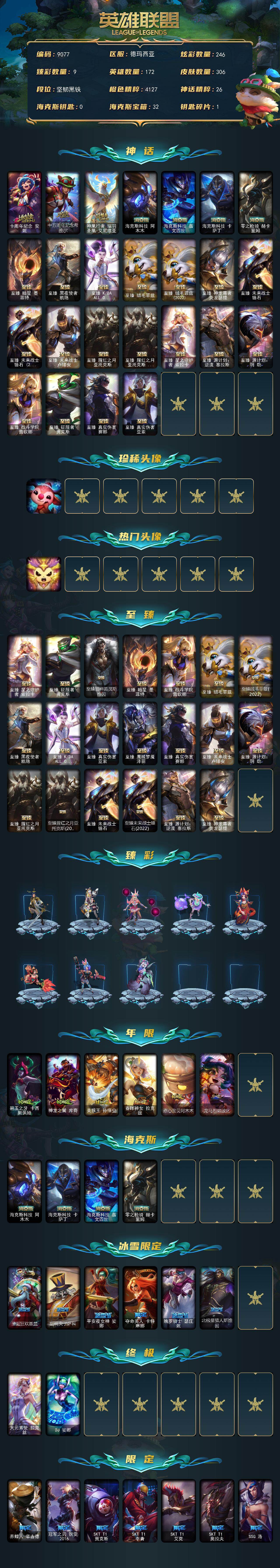 未定级段位-172英雄-306皮肤-246炫彩-2终极-27神话-42限定-30传说-60史诗
