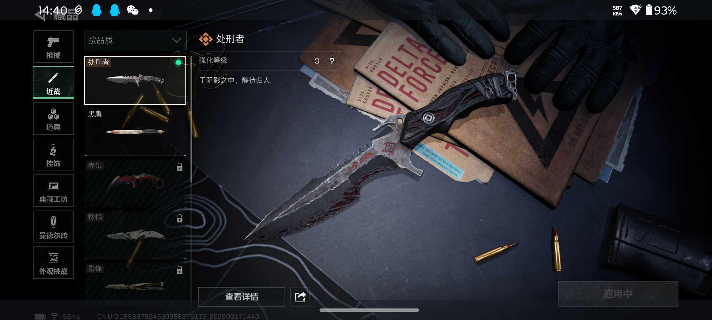 【近战皮肤】:近战-处刑者3级,近战-黑鹰