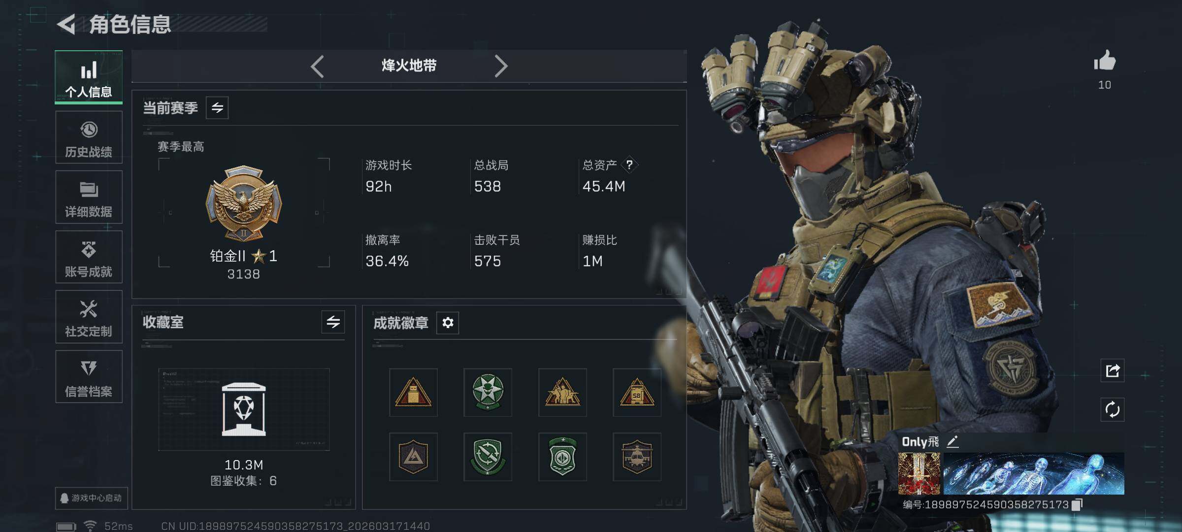 44m总资产-7799k哈伏币-60烽火等级-铂金-22战场等级-军士长