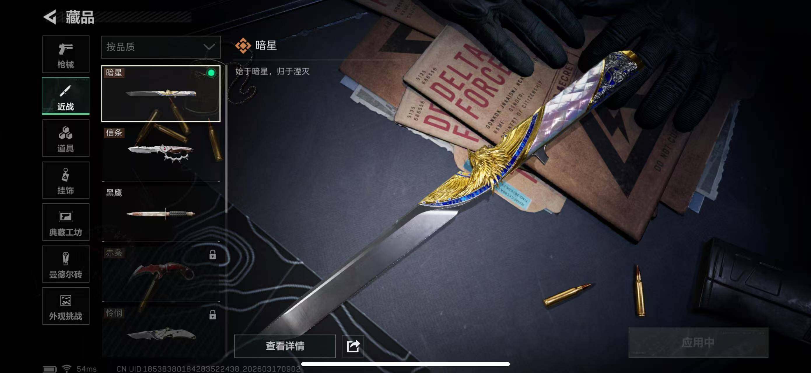 【近战皮肤】:近战-暗星,近战-信条,近战-黑鹰