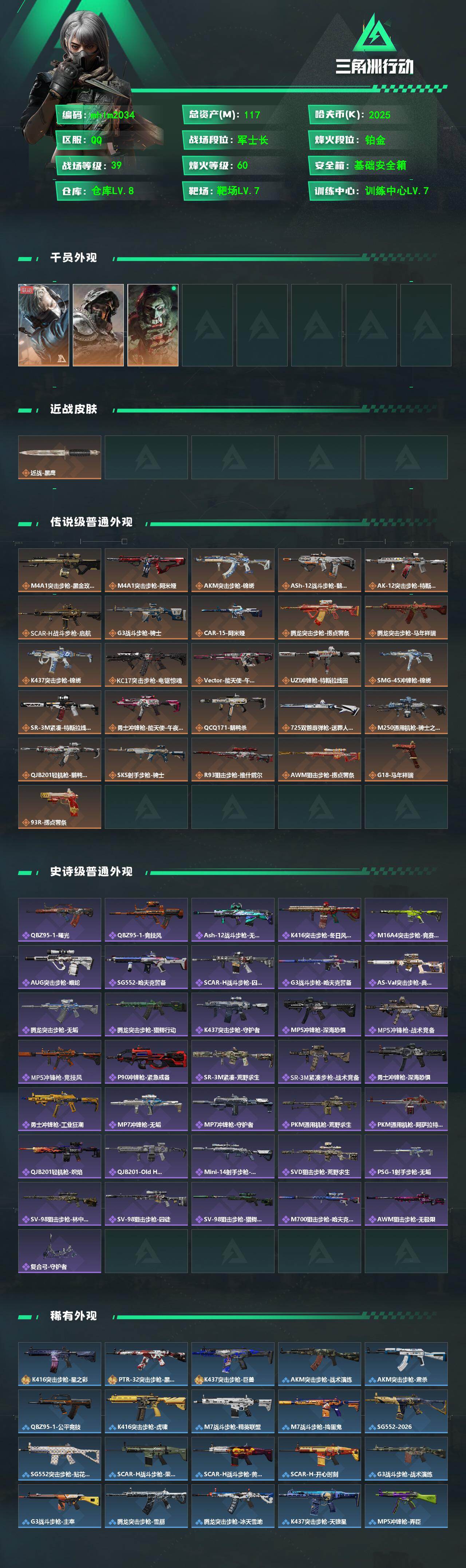 117m总资产-2025k哈夫币-60烽火等级-铂金-39战场等级-军士长