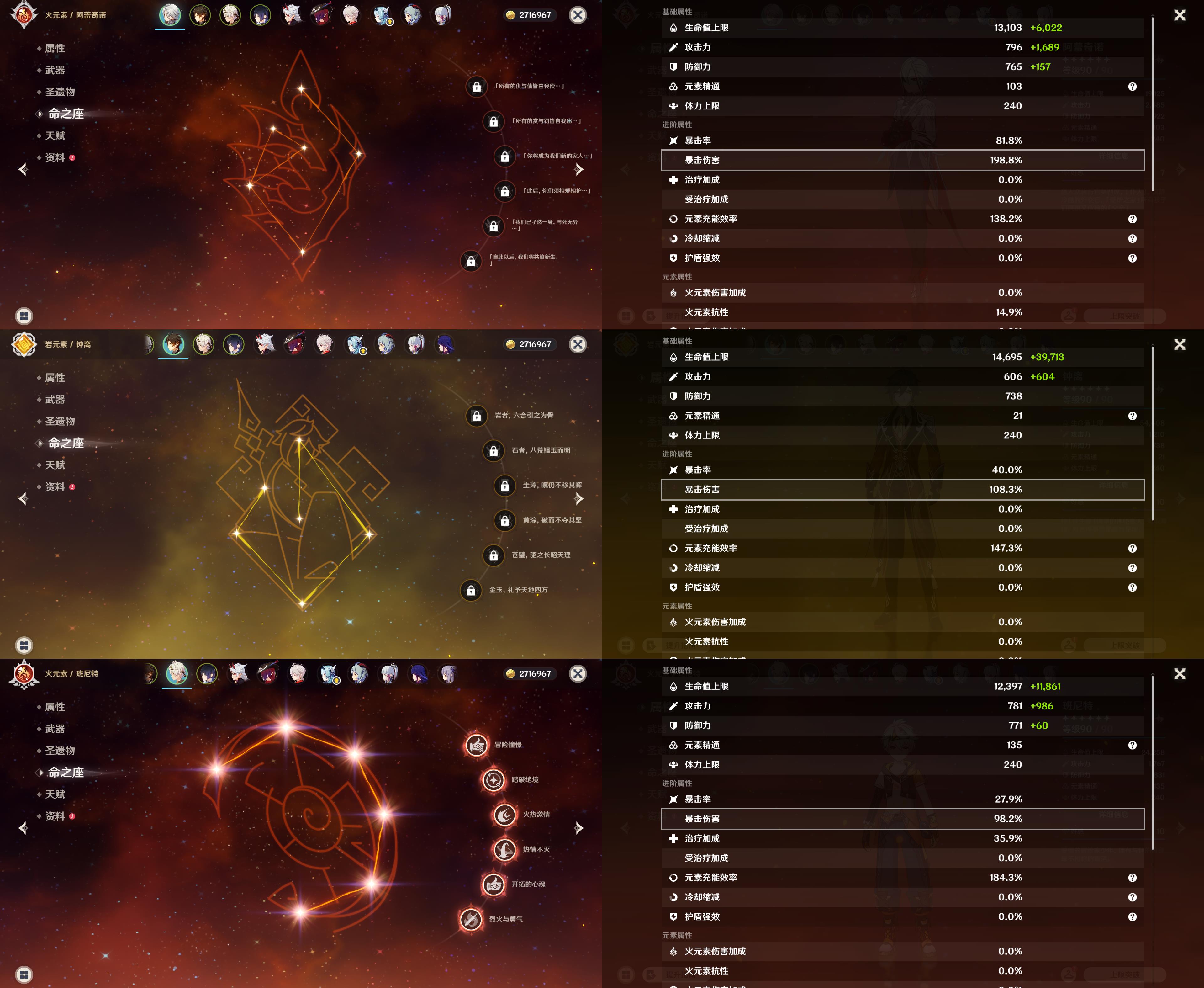 60级/52黄/女主/28个五星角色/11个五星武器/阿蕾奇诺/