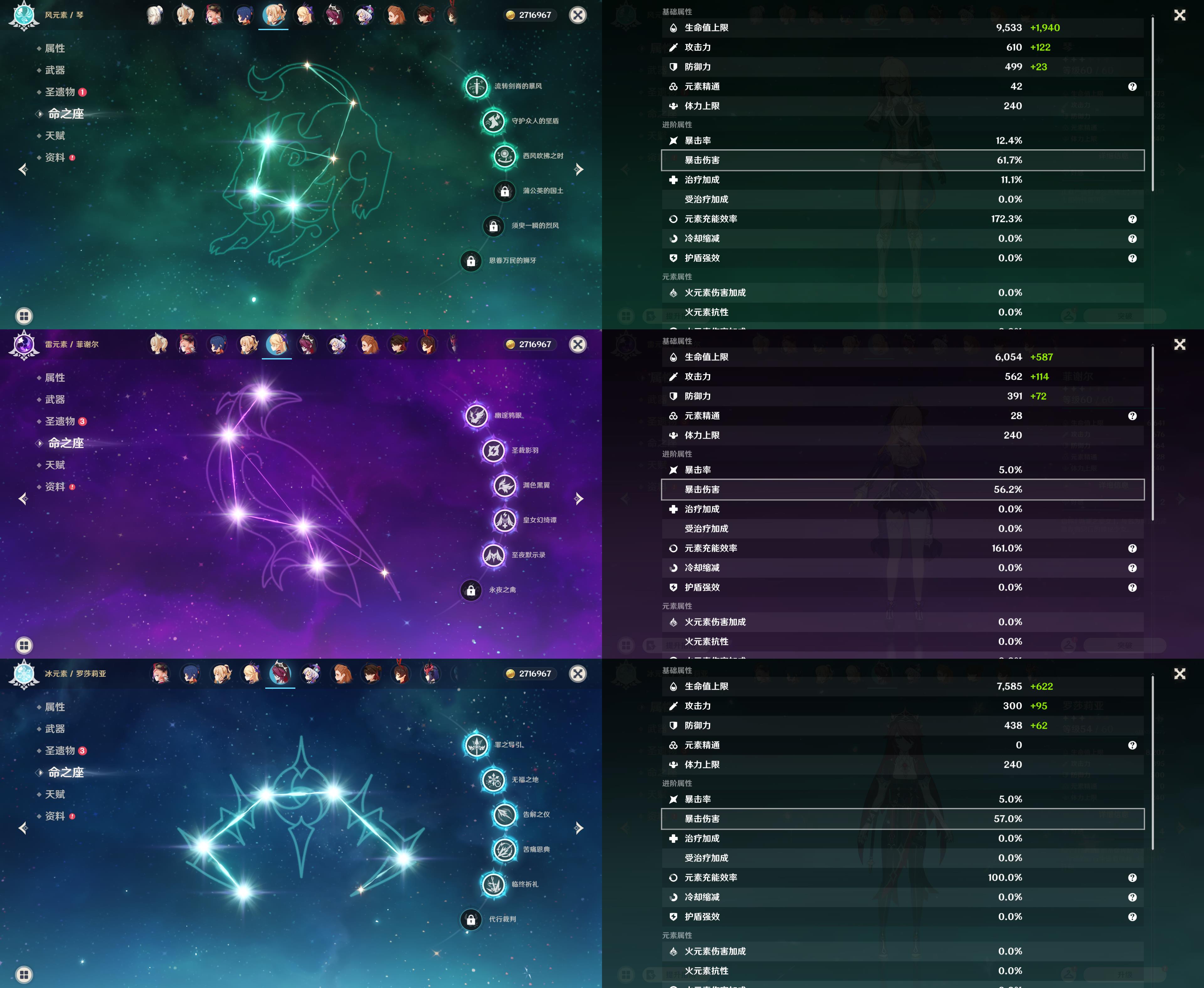 【YSF1695】60级/52黄/女主/28个五星角色/11个五星武器/阿蕾奇诺/钟离/夜兰/荒泷一斗/恰斯卡/枫原万叶/优菈/甘雨/神里绫华/雷电将军/1命刻晴/纳西妲/芙宁娜/那维莱特/珊瑚宫心海/林尼/温迪/艾尔海森/满命莫娜/迪卢克/0命菈乌玛/妮露/3命琴/七七/0命埃洛伊/梦见月瑞希/提纳里/1命迪希雅/无工之剑/雾切之回光/若水/精2阿莫斯之弓/冲浪时光/风鹰剑/天空之卷/天空之脊/天空之傲