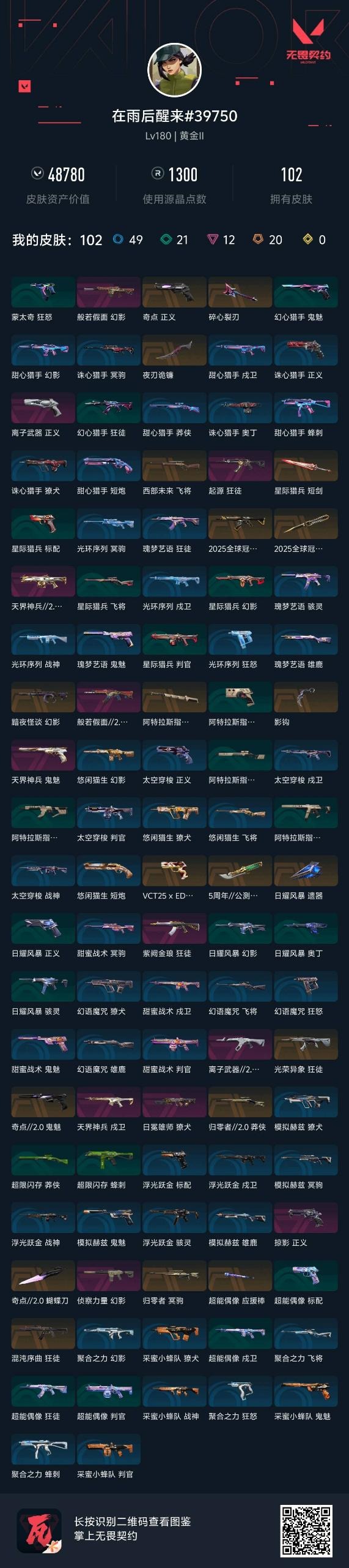 20橙皮 12紫皮 102皮肤 28英雄 138卡面 1300已