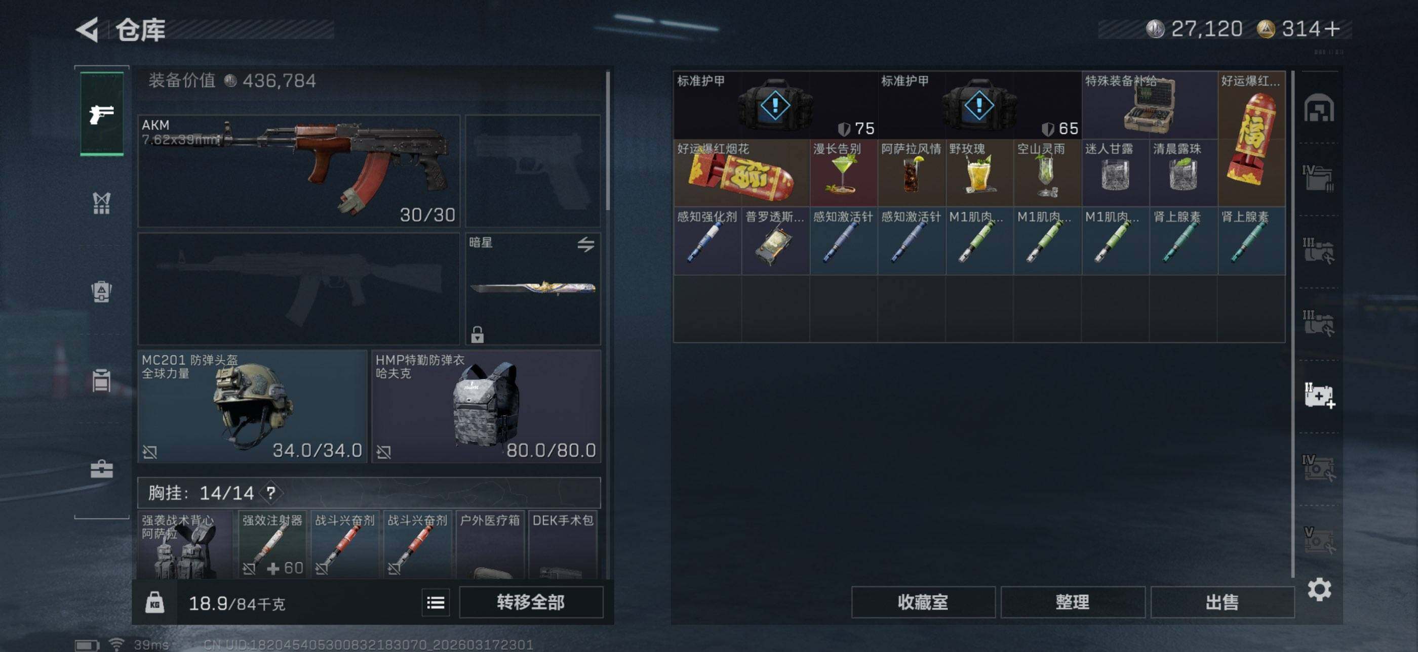 80m总资产-27k哈夫币-60烽火等级-黑鹰-14战场等级-列兵【近战皮肤