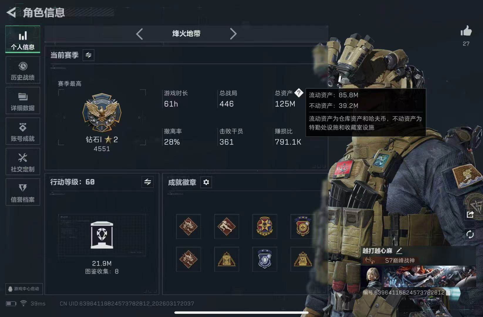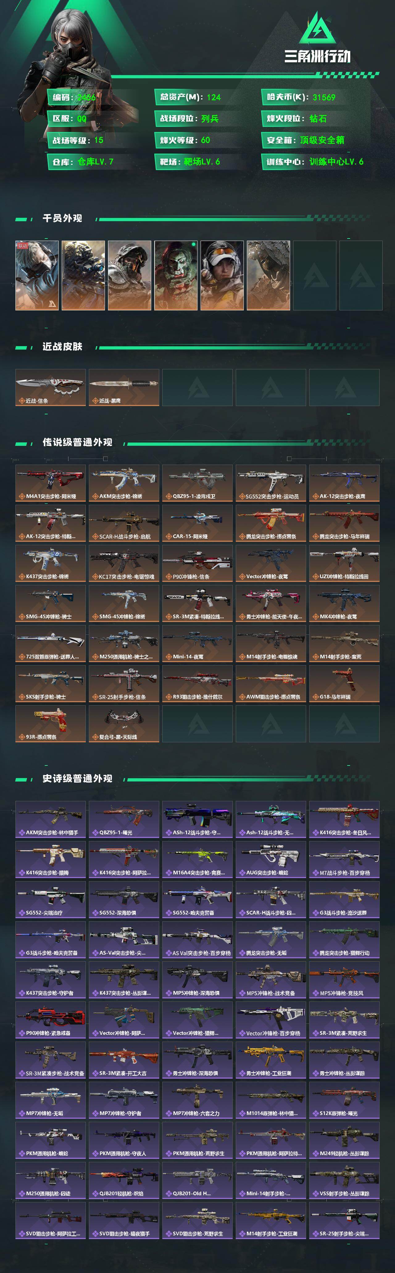 124m总资产-31569k哈夫币-60烽火等级-钻石-15战场等级-列兵
