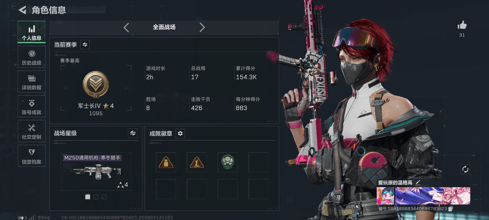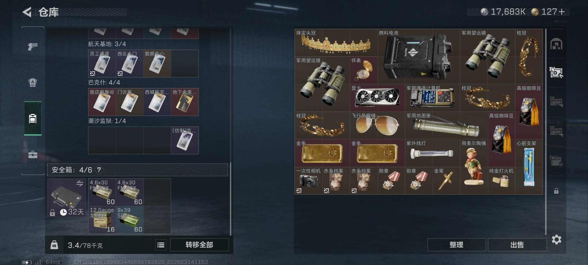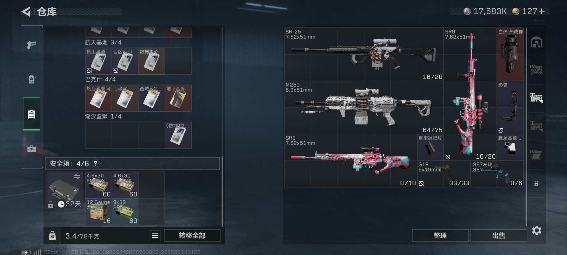 [17712796]总资产:68.9M 3干员外观 30传说枪械 哈夫币:17.683K 可二次 可修改实名