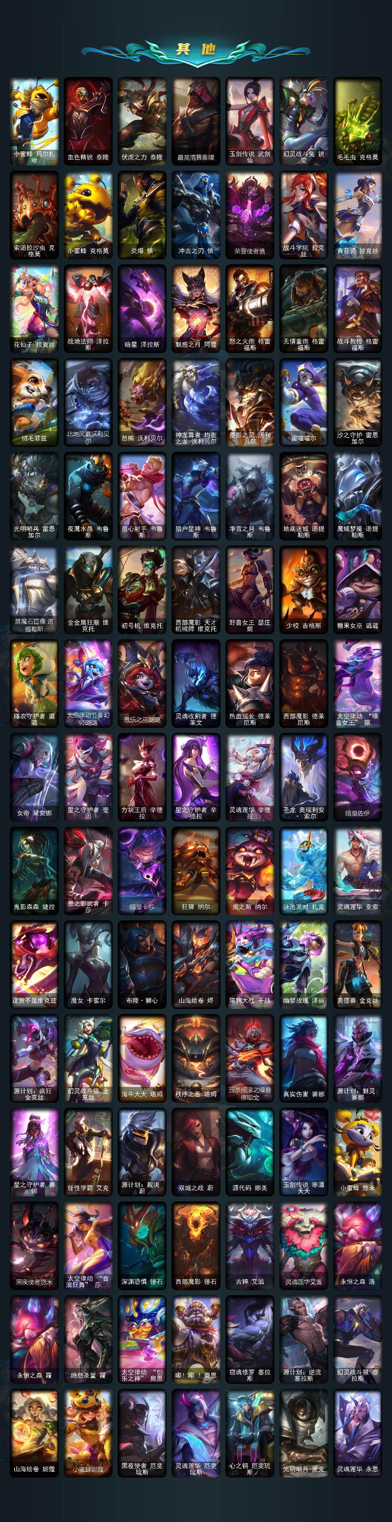 【神话皮肤】:十周年纪念安妮,源代码乐芙兰,十五周年纪念希维尔,创世黑夜使者亚索,海克斯科技阿利斯塔,海克斯科技雷克顿,摄魂使者薇恩,至臻至高天奎桑提,至臻天龙之子伊泽瑞尔,至臻电玩女神凯特琳,至臻电玩女神凯特琳2022,至臻黑夜使者凯隐,至臻KDA阿狸,至臻KDA卡莎,至臻魅惑女巫厄运小姐,至臻腥红之月亚托克斯,至臻腥红之月亚托克斯2022,至臻源计划正义艾瑞莉娅,至臻源计划正义艾瑞莉娅20