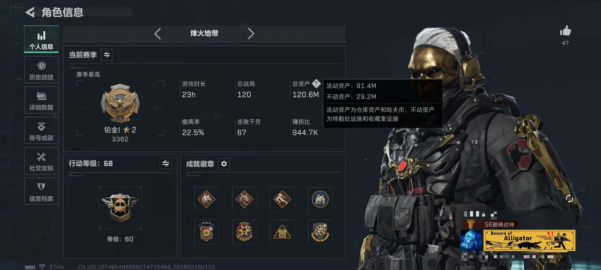 总资产(M):120M/哈夫币(K):202K/哈夫币(K)