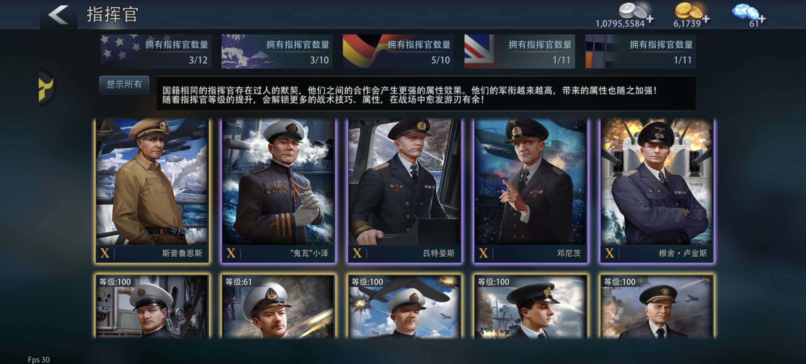13w战力u47,顶级涂装金穗碧浪、师恩似海,22年限定称号,部件s3s2,元帅克雷,贸易不能用。