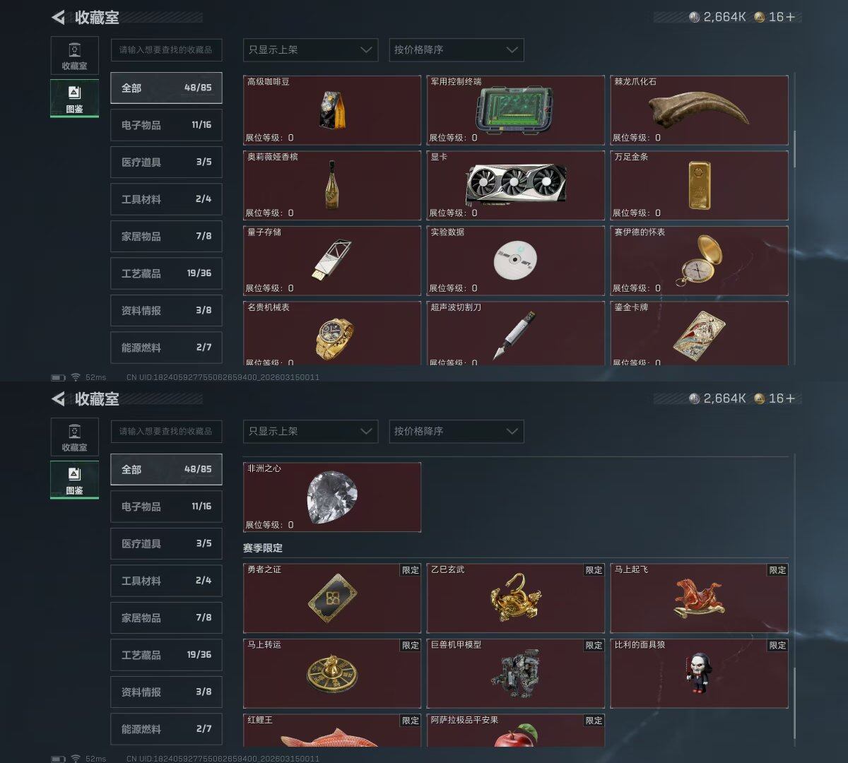 【SJ1400】【满体有二次信条暗星带S8顶级3X3】60级/总资171M/流资121M/刀皮(电锯惊魂+信条+处刑者+暗星)红狼(蚀金玫瑰+电锯惊魂)乌鲁鲁(荒原猎手)深蓝(不破誓约)露娜(金牌射手)骇爪(维什戴尔)/8级仓库7级体力6级负重2级潜水/非洲之心