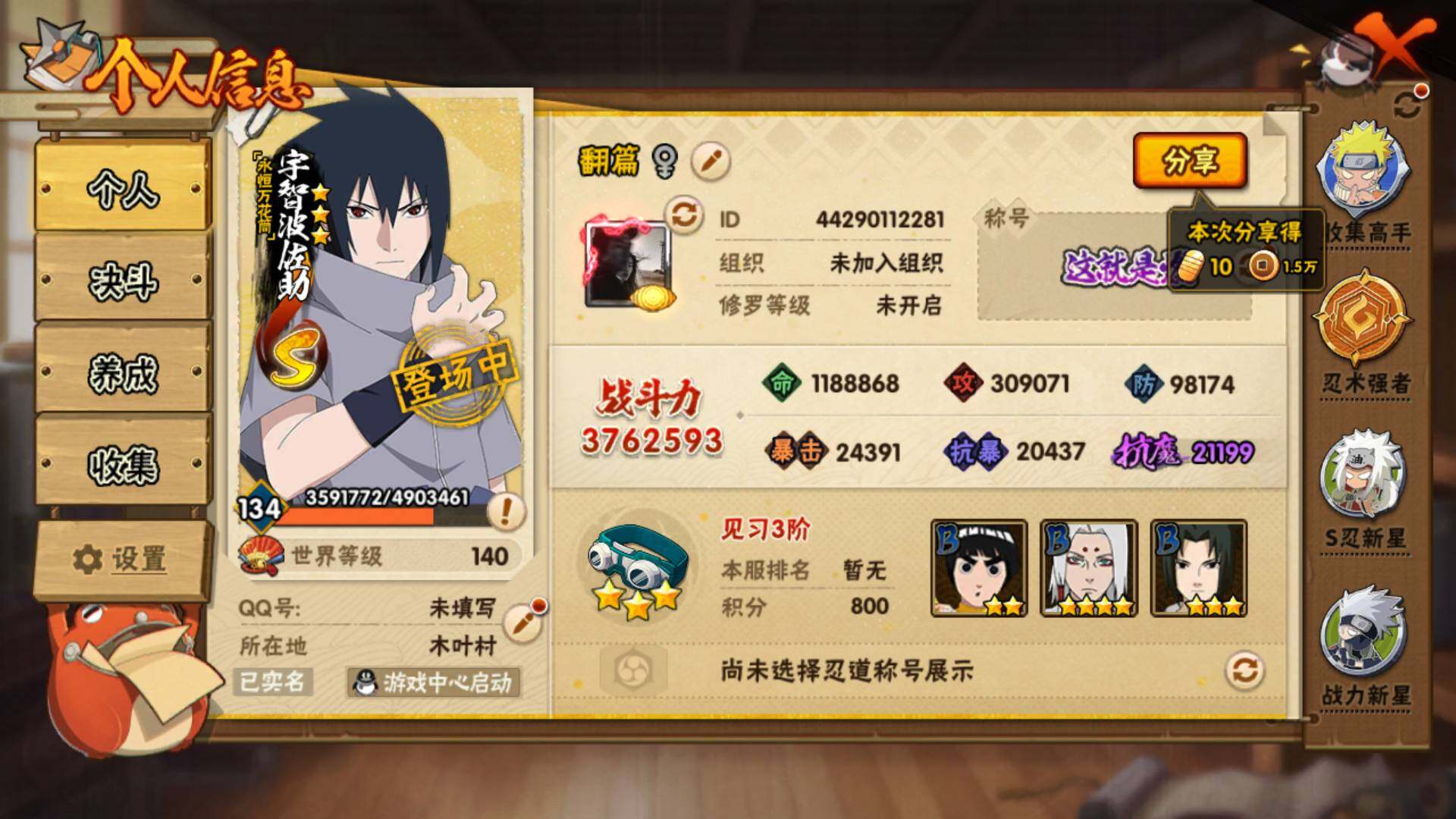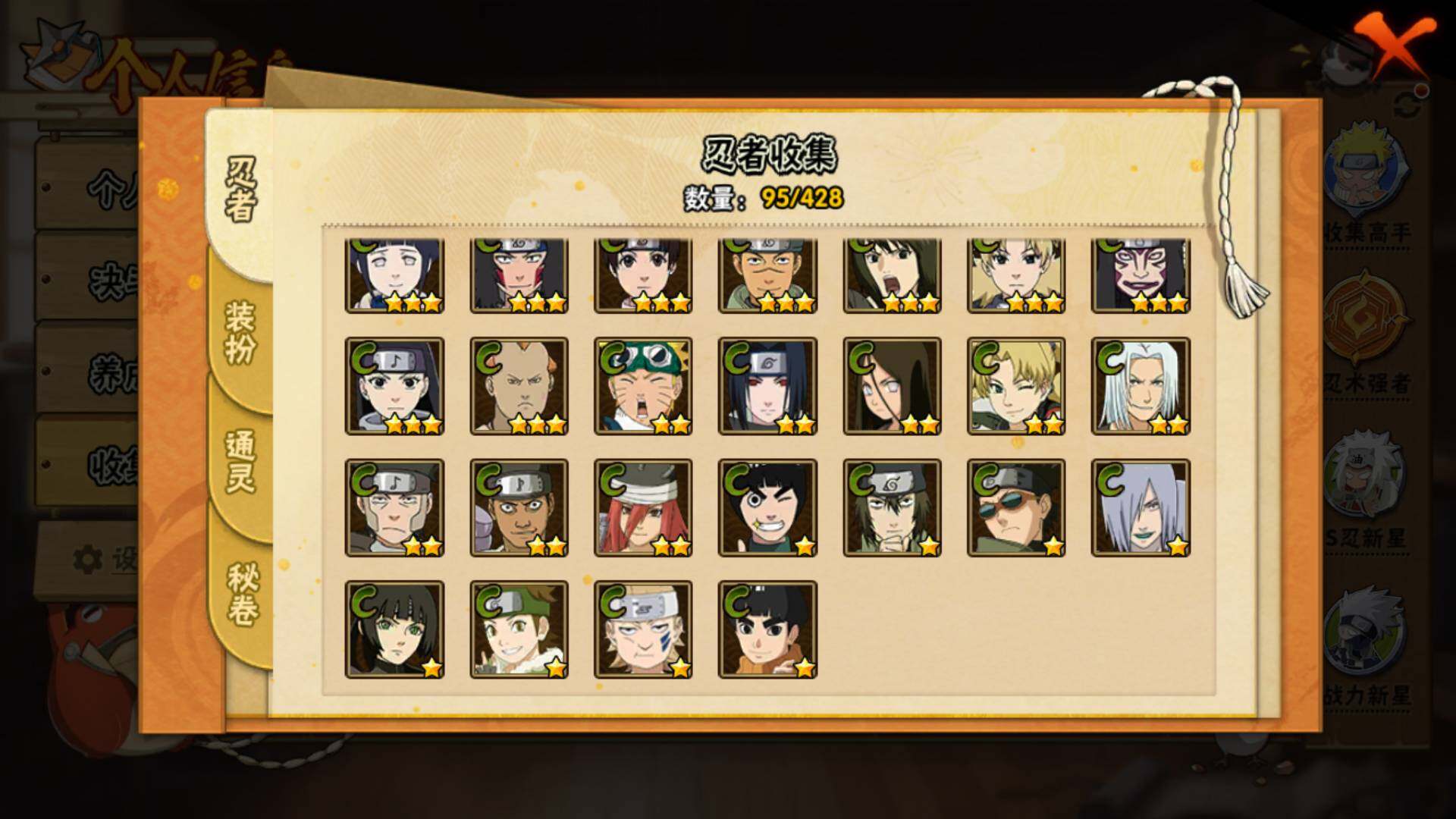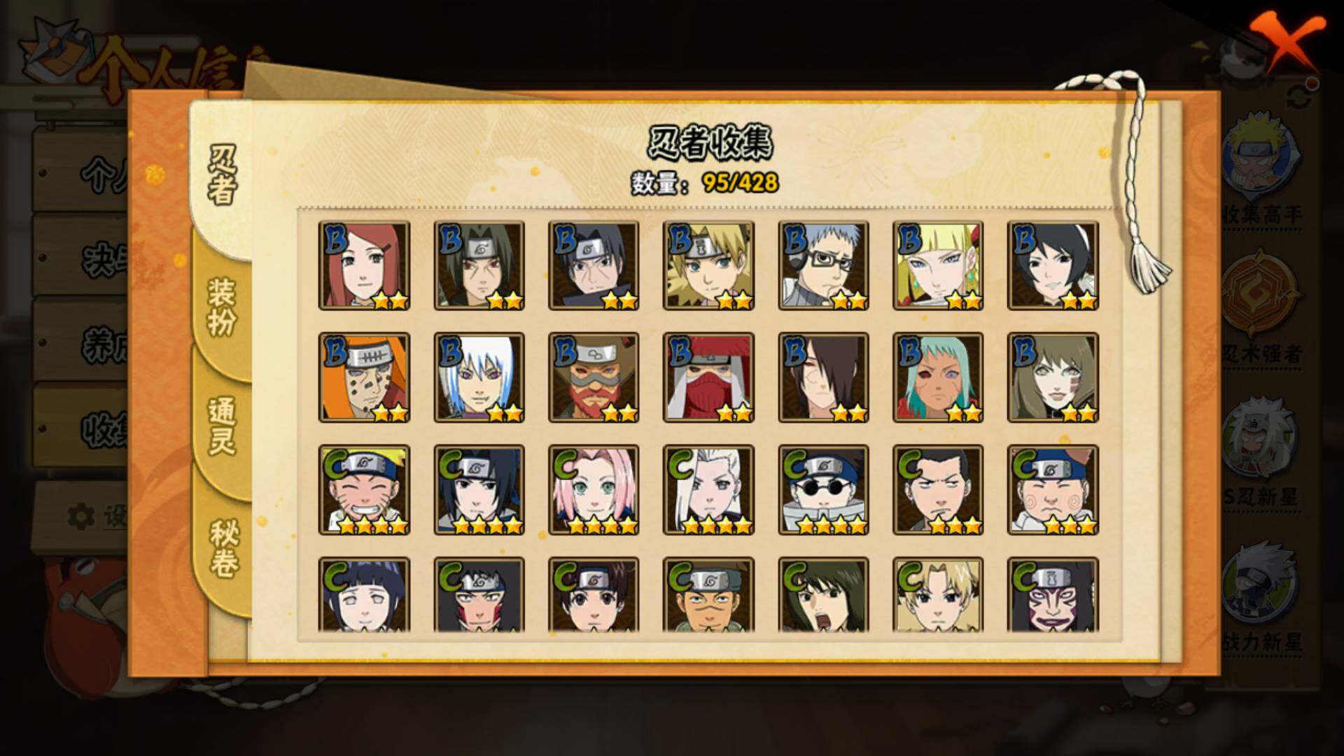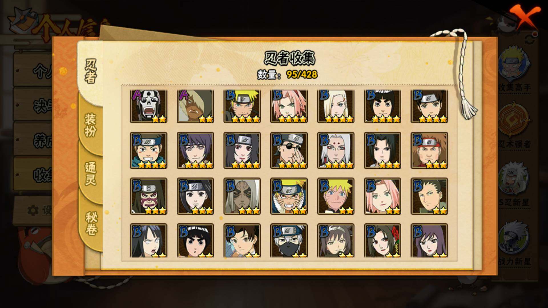 【A级忍者】:艾「青年」(2星),长门「青年」(2星),波风水门「青年」(2星),达鲁伊「博人传」