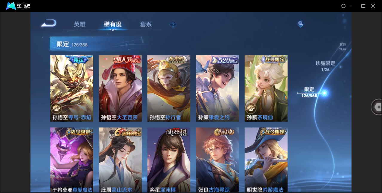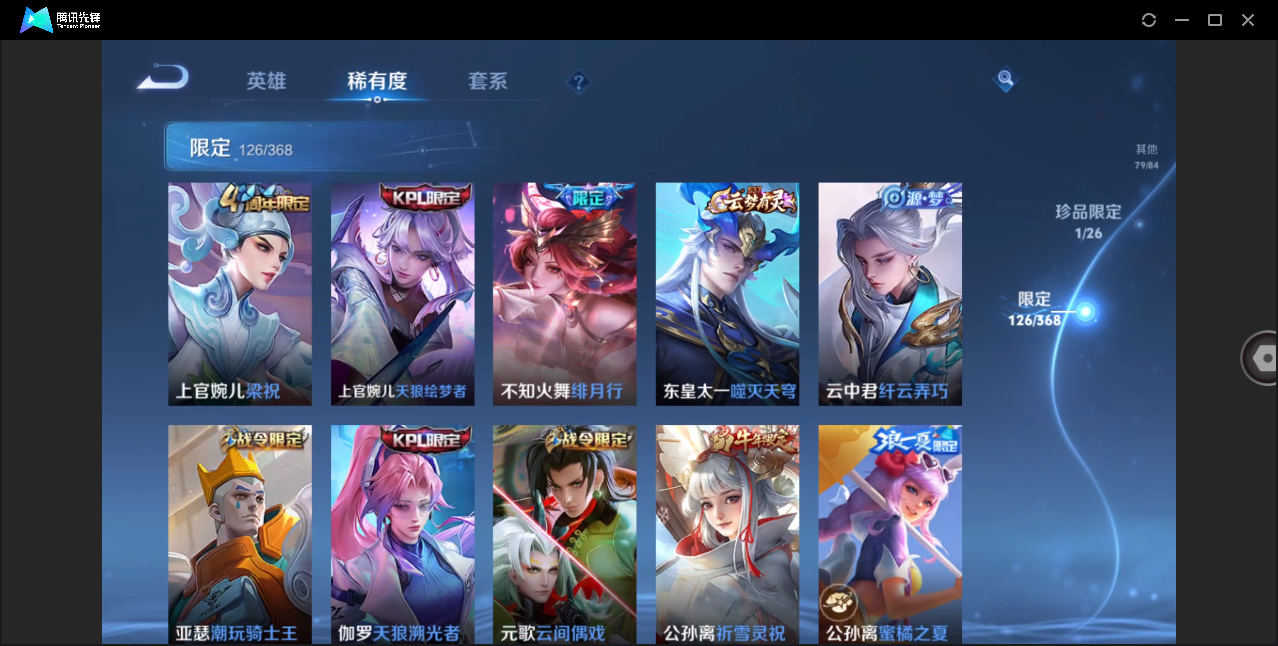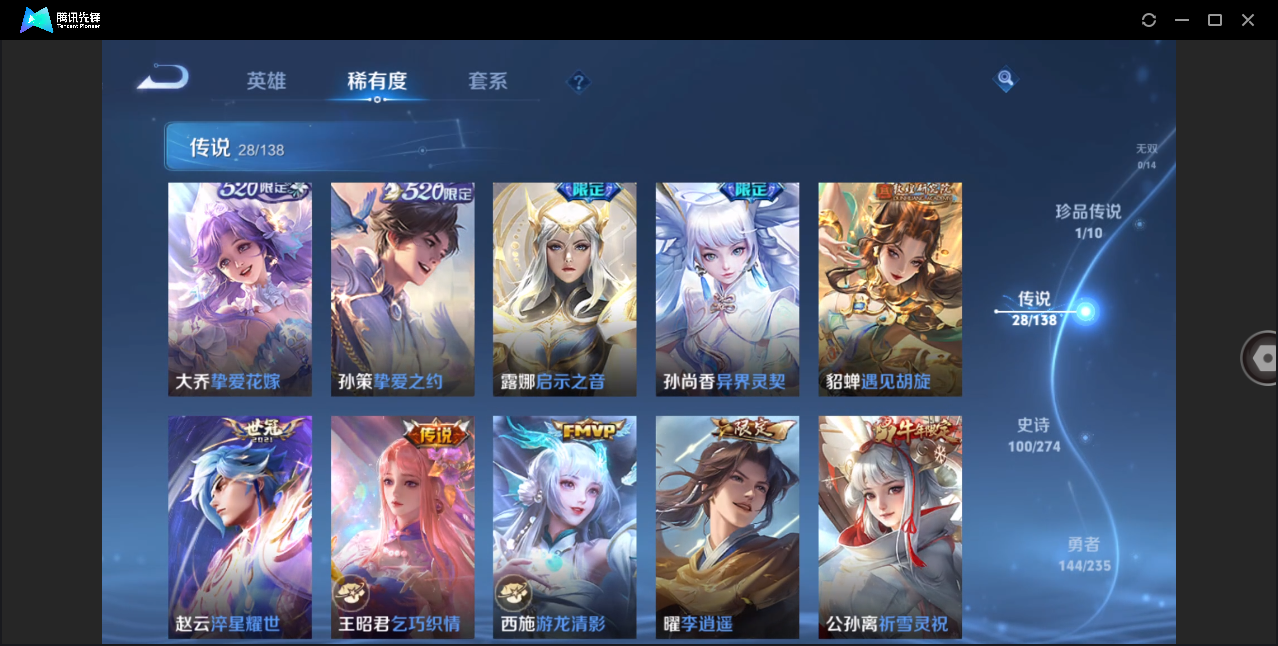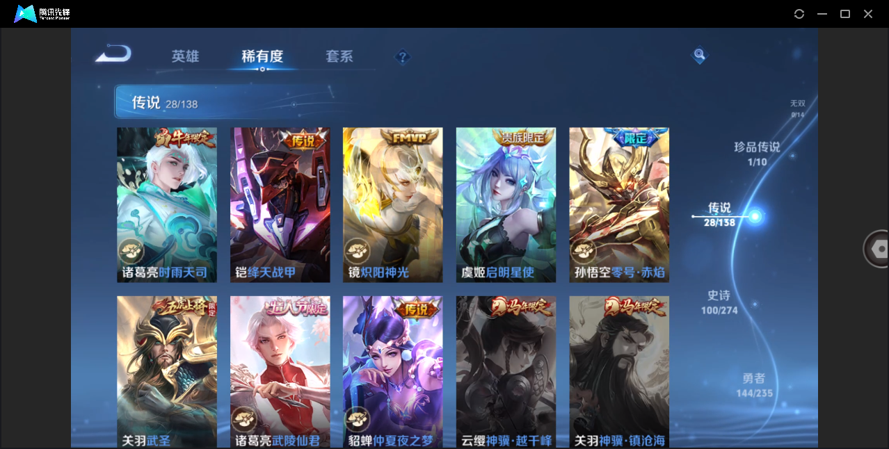 贵8-128英雄-354皮肤-2典藏-1珍品-28传说2天幕