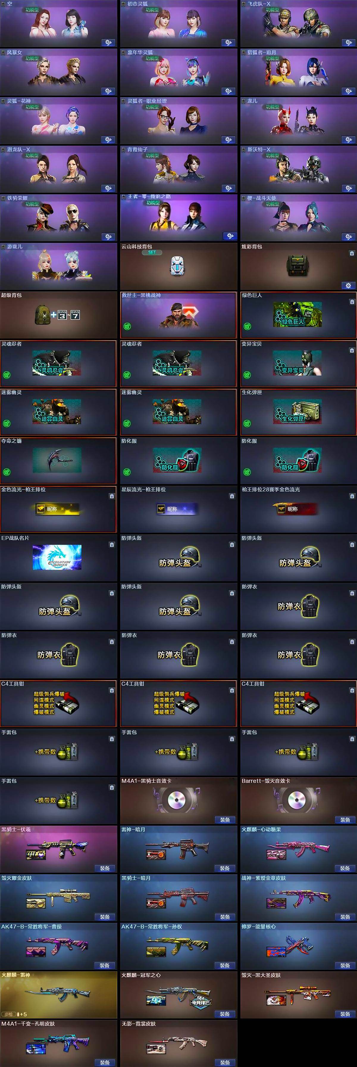 【皮肤】:雷神-暗月,火麒麟-雷神,火麒麟-冠军之心,火麒麟-心动糖果,毁灭耀金皮肤,毁灭-黑大圣皮肤,M4A1-千变-孔明皮肤,黑骑士-暗月,黑骑士-伏羲,无影-霓裳皮肤,战神-紫绶金章皮肤,AK47-B