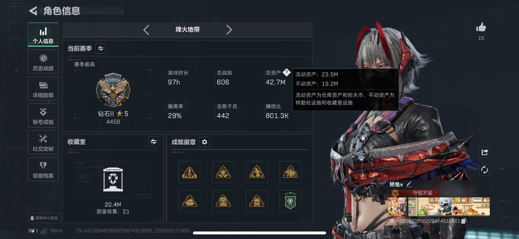 42.7m 麦晓雯红皮 露娜赛季皮 九格保险 信条 黑夜猎手隐藏款 7仓4体4负