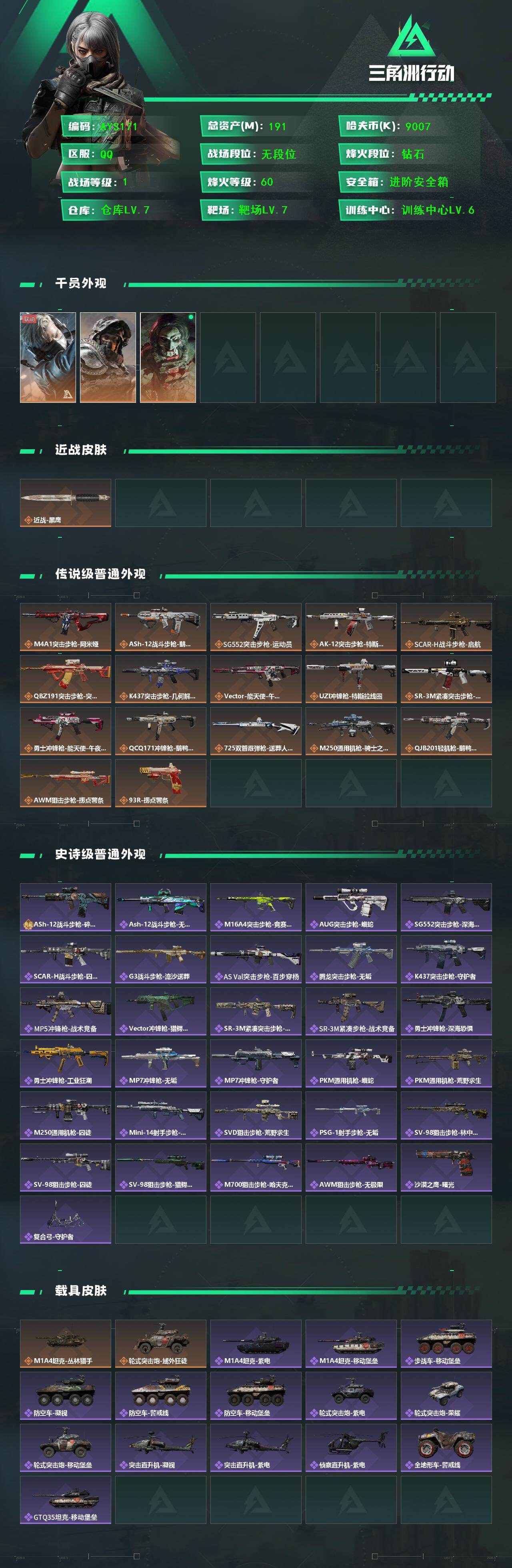 【店主推荐捡漏号!可直接换绑】9007k哈伏币-168m流动资产-60烽火等级-钻石-1战场等级-无军衔【干员外观】:蜂医-送葬人·无题密令,深蓝-不破誓约,红狼-电锯惊魂【近战皮肤】:近战-黑鹰【传说外观】:M4A1突击步枪-阿米娅,ASh-12战斗步枪-鹅鸭杀,SG552突击步枪-运动员,AK-12突击步枪-特斯拉线圈,SCAR-H战斗步枪-启航,腾龙突击步枪-捞点薯条,K437突击步枪-几何解构,Vector冲锋枪-能天使-午夜邮差,UZI冲锋枪-特斯拉线圈,SR-3M紧凑突击步枪-特斯拉
