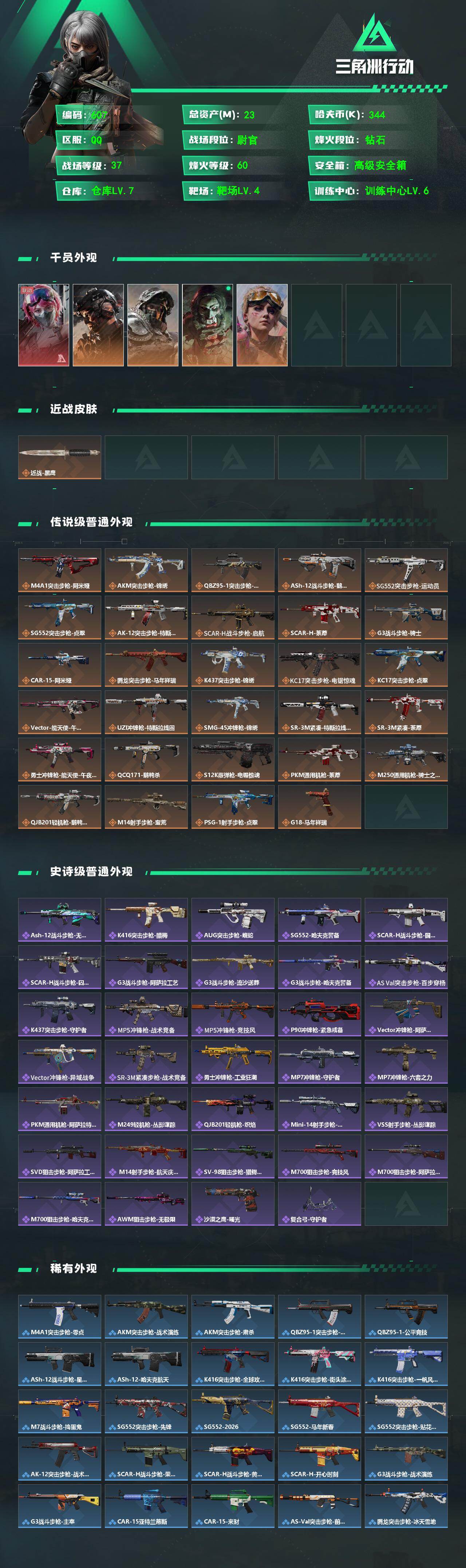 23m总资产-344k哈夫币-60烽火等级-钻石-37战场等级-尉官