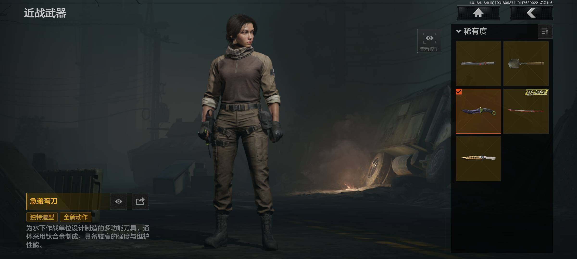【近战武器】:工兵铲,来战开山刀,急袭弯刀,热能武器补牢,赢家匕首