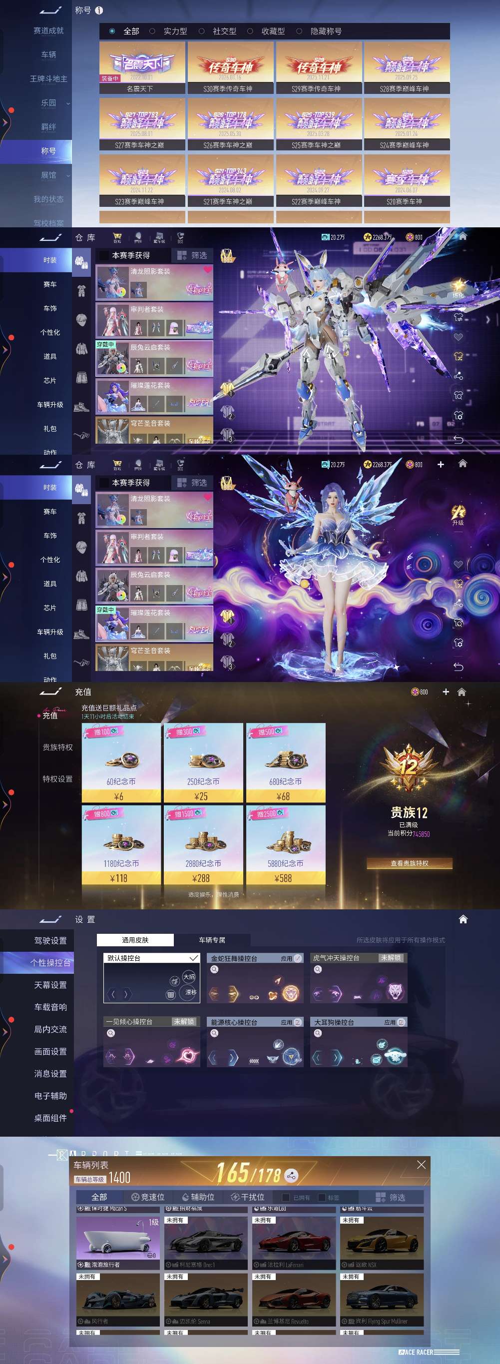 王牌竞速vivo渠道 v12 纯充值7.4w+ 165辆车 毒药 圣骑士神剑号猫棉三车姬